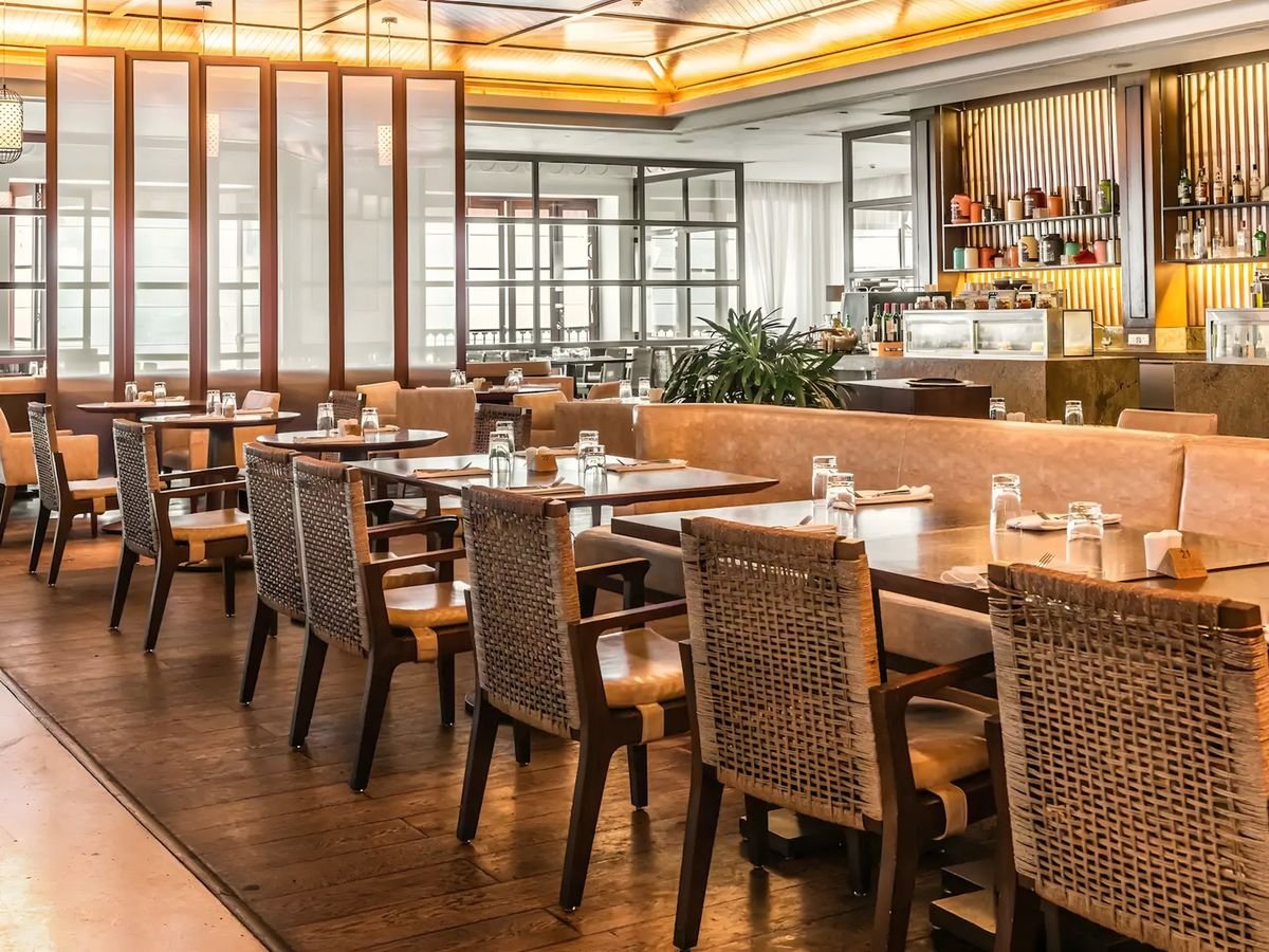 standardowy: 2-os. ok. 50m², indywidualnie sterowana klimatyzacja, wentylator sufitowy, łazienka (wanna i prysznic, wc; suszarka, zestaw kosmetyków, szlafrok), internet bezprzewodowy, telewizja kablowa/satelitarna, telefon, sejf; balkon (stolik i krzesełka), widok na zatokę.