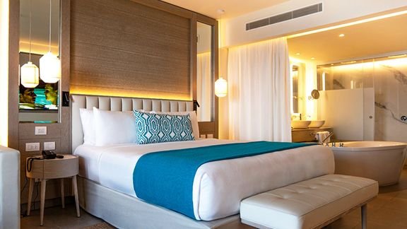 Wodne szaleństwo, ciekawe atrakcje i plaża na wyciągnięcie na ręki – to miejsce stworzone jest z myślą o rodzinnych wakacjach z dziećmi. Jest tu wszystko czego Ty i Twoje pociechy potrzebujecie – park wodny ze zjeżdżalniami, baseny, animacje, a także oferta sportów wodnych i centrum fitness. Urlop równa się relaks? Proszę bardzo – piękna plaża jest tuż przy hotelu, a hotelowe spa zaprasza na kąpiel w saunie i masaże. Świetnie zaprojektowane pokoje są przestronne i ciekawie urządzone, a niektóre z nich mają własne jacuzzi lub wyjście do współdzielonego basenu. Jeśli chcesz, by Twój pobyt był jeszcze bardziej luksusowy to skorzystaj z opcji Platinum, która zapewnia nie tylko atrakcyjne zniżki, ale i wstęp do specjalnie dedykowanej części na plaży czy basenu na dachu!