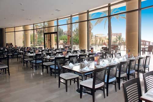 czterogwiazdkowy, zadbany, sezonowo odnawiany, 277 pokoi, kilka budynków, 6 wind, 3 piętra, przestronny hol, całodobowa recepcja, restauracja główna Cristal - dania w formie bufetu, obsługa kelnerska, kuchnia międzynarodowa, dania wegetariańskie, inne diety na zamówienie przed przyjazdem, restauracja à la carte - kuchnia libańska, dania mięsne, w restauracjach dostępne foteliki dla dzieci; bar w lobby, bar Sunset, snack-bar przy basenie, bar Aqua Fun, sejf w recepcji, kilka sklepów z różnym asortymentem; sala konferencyjna dla 150 osób, taras; za opłatą: internet bezprzewodowy w lobby, całodobowy room-service, lekarz na wezwanie, opiekunka do dziecka; akceptowane karty kredytowe: Visa, MsaasterCard, American Express.