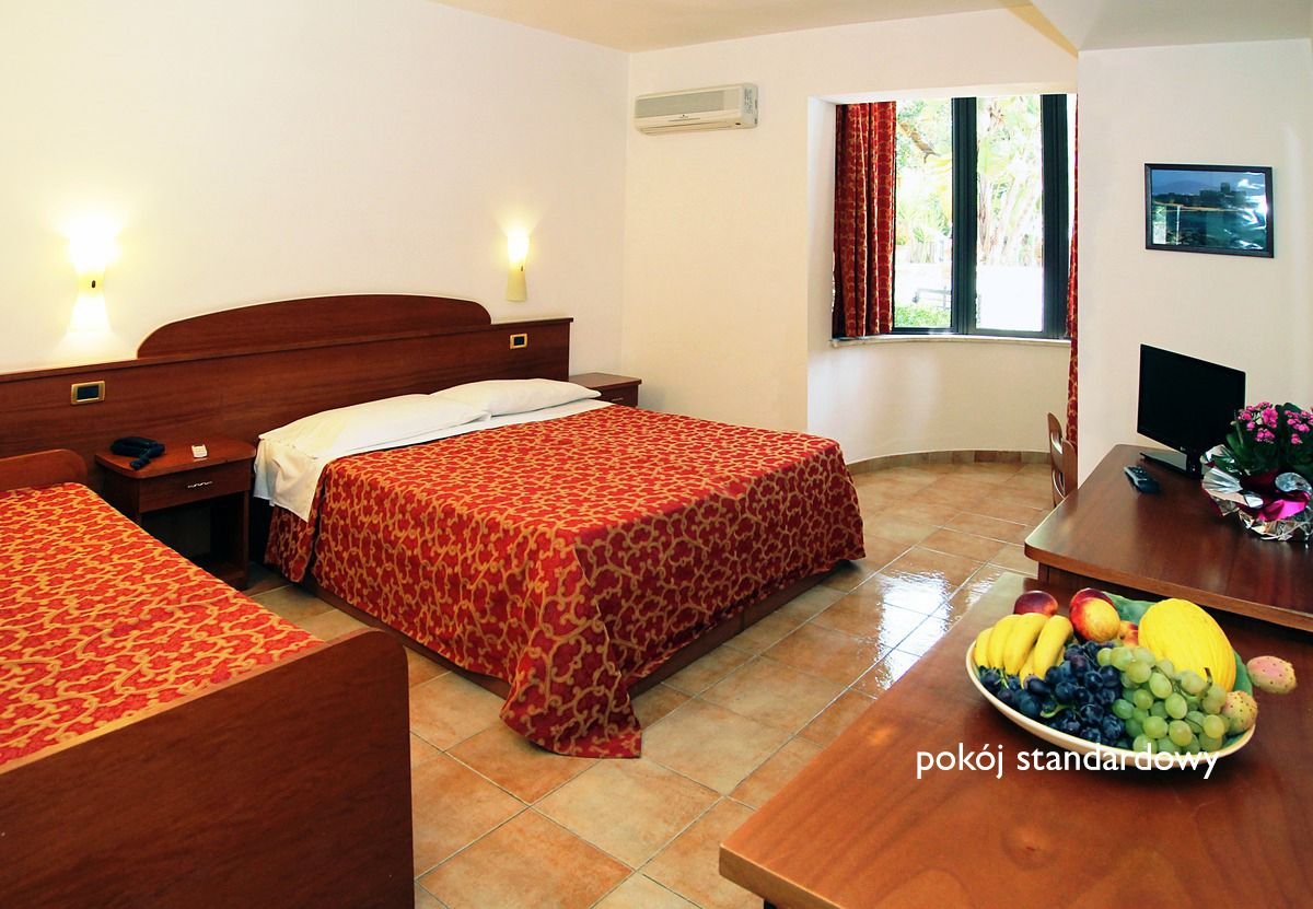 Hotel położony w wypielęgnowanym, zielonym ogrodzie, polecany na wakacje dla rodzin i osób ceniących ładne, piaszczyste plaże. Do dyspozycji Gości są zadbane i praktycznie wyposażone pokoje, 3 bary i dwie restauracje serwujące kuchnię włoską. Do piaszczystej plaży dowozi bezpłatny hotelowy bus, można też wybrać się do słynnej Tropei zbudowanej na klifie, pełnej sklepów i knajpek.