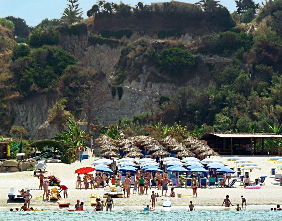 Costa Degli Dei, hotelowa, piaszczysta, łagodne zejście do morza, ok. 1,3 km od hotelu, dojście do chodnikiem lub dojazd bezpłatnym hotelowym busem, zejście ścieżką po klifie, bezpłatne parasole i leżaki, ręczniki płatne (ok. 3 EUR + kaucja: ok. 10 EUR).