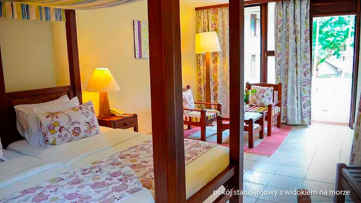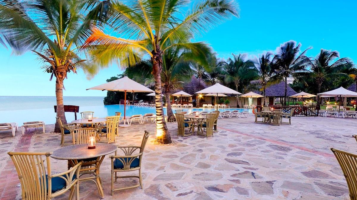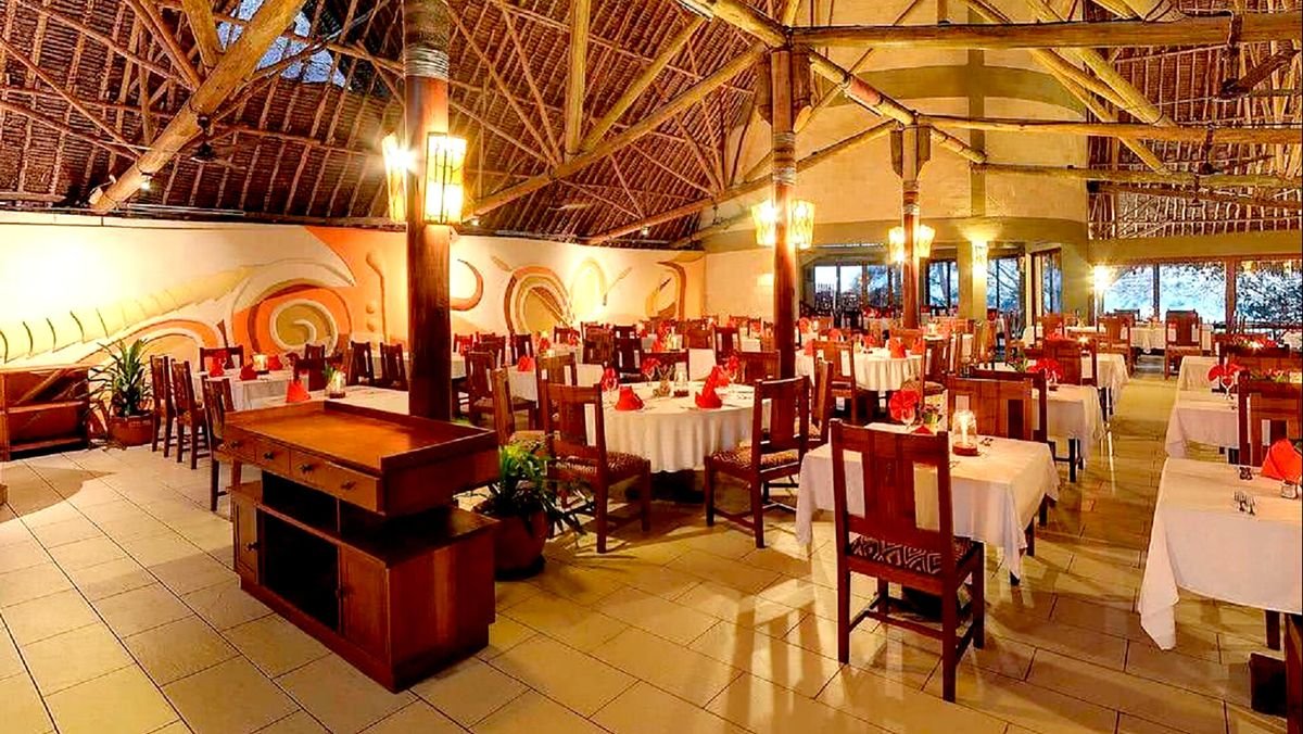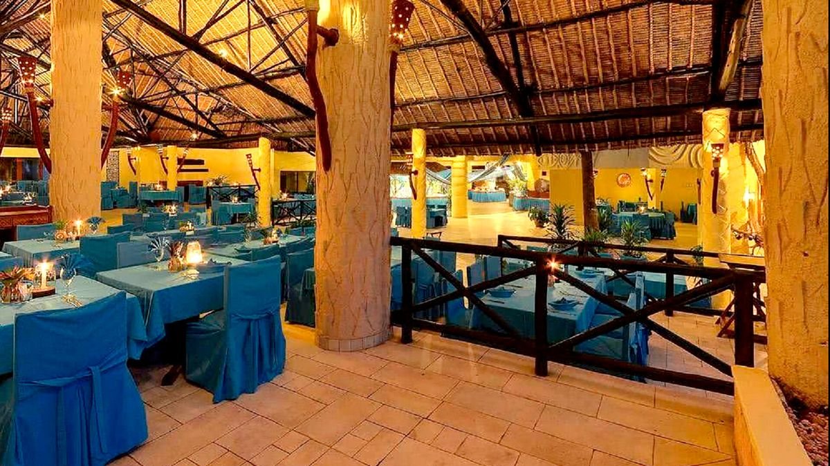 śniadanie (7.00-10.00), obiad (12.30-14.00), kolacja (19.30-21.30) formie bufetu w restauracjach głównych: Karibu, Jodari i Maridadi, kolacje á la carte (19.30-21.30) w restauracjach Marhaba i Tangezi (w restauracjach obowiązuje strój formalny – panowie długie spodnie); przekąski w barach: Tapa Tapa, Kipepeo, Suli Suli i Maridadi (11.00-12.30 i 18.00-19.30); podwieczorek w barach: Tapa Tapa i Maridadi (16.00-17.00); lokalne napoje bezalkoholowe i lokalne napoje alkoholowe w Tapa Tapa, Marinami, Porini, Jambo, Suli Suli, Kipepeo (10.00-24.00).