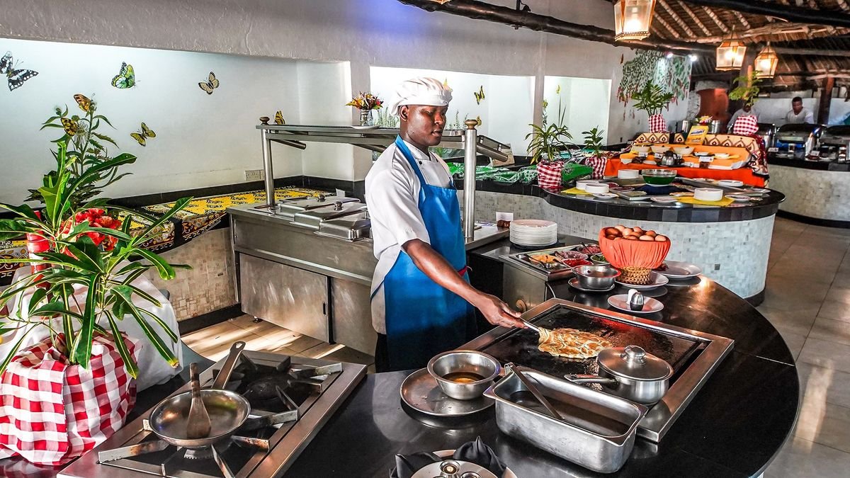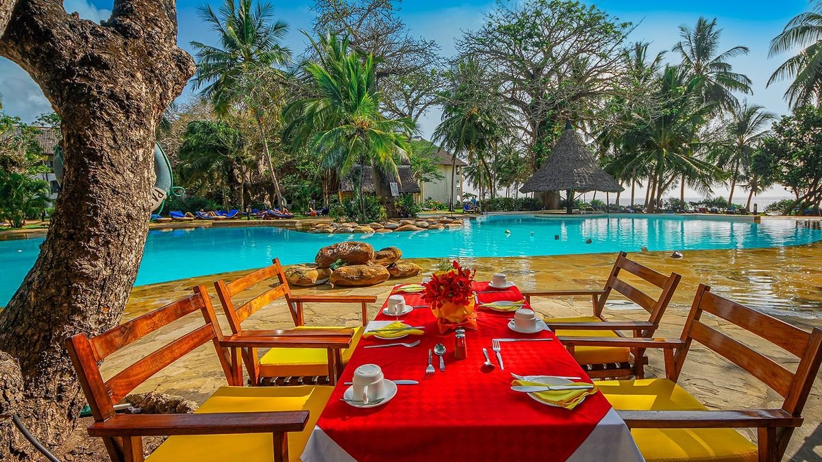 Pięknie położony, zbudowany w lokalnym stylu suahili, w tropikalnym ogrodzie, gdzie na egzotycznych baobabach harcują urocze małpki Colobus. W ogrodzie przyjemnie zaprojektowane ścieżki, rzeczki z małym wodospadem, kładki, palmy i kwiaty sprzyjają relaksowi po upalnym dniu. Główna restauracja Baobab ma afrykański dach kryty strzechą, co dodaje egzotyki nawet daniom międzynarodowym. Wyśmienita, urozmaicona kuchnia, znakomita, kompetentna obsługa, ogromna dbałość o utrzymanie hotelu na najwyższym poziomie adekwatnym do kategorii.