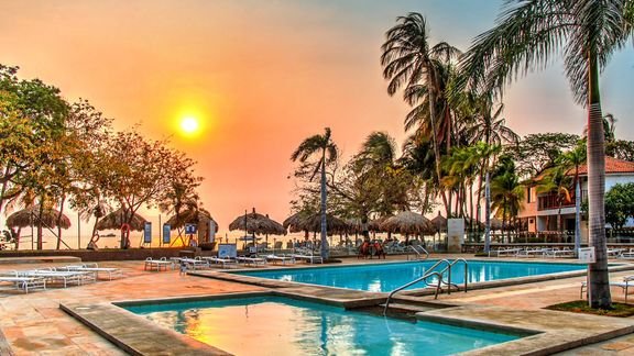 Wypoczywaj na malowniczym wybrzeżu, gdzie błękitne fale Morza Karaibskiego spotykają się z piaszczystą plażą! To idealne miejsce zarówno dla podróżujących służbowo, jak i tych, którzy marzą o błogim odpoczynku w miejscu inspirowanym naturą. Zachwyć się widokami na morze oraz spektakularne zachody słońca i wybierz swój sposób na chwilę dla siebie. Leniwe godziny na leżaku przy basenie, spacery i zabawy na piasku, a może relaks pod palmą, z książką w ręce? Tutaj robisz to, na co masz ochotę, a obsługa dba o urlopowy luz i rodzinną atmosferę. Świetnie czują się tu również dzieciaki, na które czeka basen i plac zabaw, na którym mogą szaleć do woli, na miejscu jest też pizzeria. Niedaleko stąd do historycznego centrum najstarszego miasta Kolumbii – Santa Marta, pełnego kolorowych targów i zabytkowych miejsc, do których dojedziesz w kilka minut.