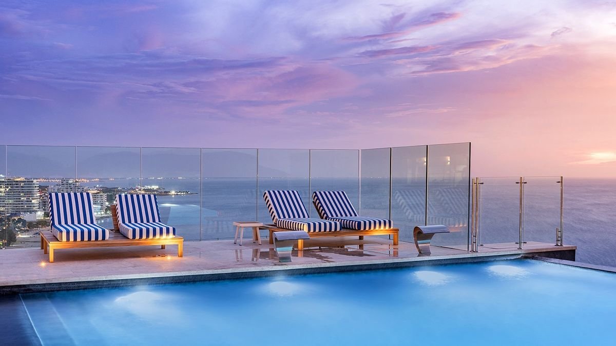 2 baseny infinity, w tym na dachu, nieregularny kształt, słodka woda