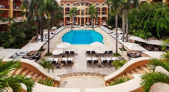 Wyjątkowy, zaaranżowany w zabudowaniach z XVII w., położony w Cartagena de Indias – mieście otoczonym murami i z zabytkami wpisanymi na Listę Światowego Dziedzictwa UNESCO. Jeśli lubisz poznawać historię, możesz wybrać się na spacer i zwiedzić fort San Felipe de Barajas, który chronił miasto w czasach kolonialnych, a dziś cieszy ciekawą architekturą i pocztówkowym widokiem na panoramę miasta. Unikalny styl hotelu łączy jego historię, luksusowe wnętrza i nowoczesne udogodnienia, oferuje usługi na najwyższym poziomie, za co był wielokrotnie nagradzany prestiżowymi nagrodami, zasmakujesz tu wyśmienitej kuchni i zorganizujesz spotkania biznesowe lub ważne wydarzenia rodzinne w wyjątkowym centrum konferencyjnym. Odpocznij w cieniu palm przy pięknym hotelowym basenie lub zrelaksuj się w zaciszu eleganckiego pokoju. Zarezerwuj urlop i odkryj historię tego kultowego hotelu!