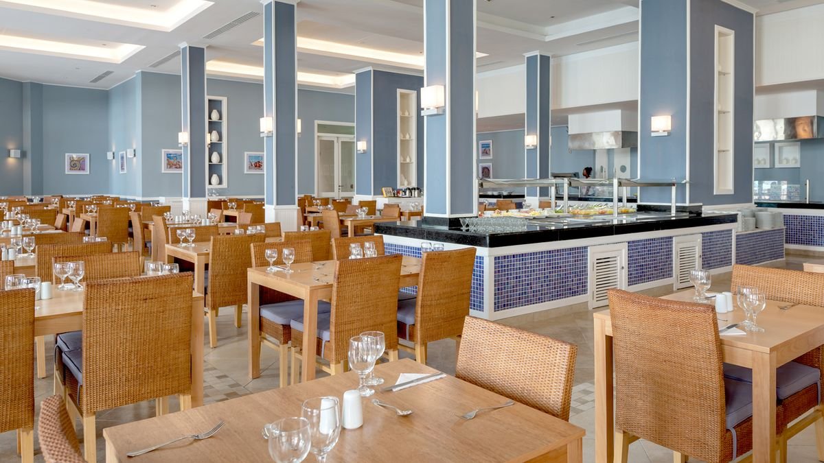 śniadanie (7.00-10.00), obiad (13.00-15.00), kolacja (19.00-22.00) w formie bufetu w restauracji głównej Azure Buffet; przekąski (24h) w Bananas Snack Bar przy basenie; napoje bezalkoholowe, lokalne oraz wybrane importowane napoje alkoholowe w wyznaczonych barach (24h); kolacja w restauracji à la carte 3 razy/tydzień (wymagana wcześniejsza rezerwacja); wymagane noszenie opasek all inclusive.
