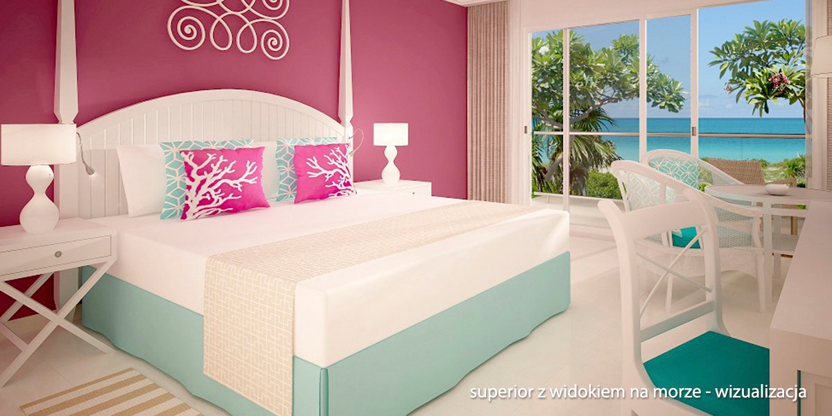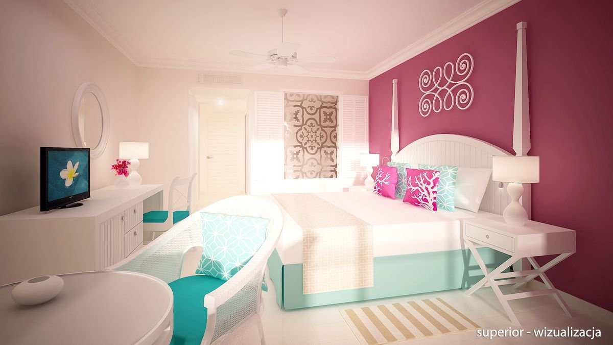 superior: 2-os. (możliwość 1 dostawki – łóżko pojedyncze), ok. 35 m², indywidualnie sterowana klimatyzacja, łazienka (prysznic typu walk-in z deszczownicą, wanna, wc; kosmetyki, suszarka), internet bezprzewodowy, telewizja satelitarna, telewizor LCD, telefon, zestaw do kawy/herbaty, minibar (bezpłatnie codziennie uzupełniany w wodę, piwo, napoje gazowane), sejf, żelazko, deska do prasowania; balkon lub taras (stolik i krzesełka), widok na ogród; boczny lub frontalny widok na morze za dopłatą; cabana deluxe: 2-os. (możliwość 1 dostawki – łóżko pojedyncze), ok. 40 m², w willach bliżej plaży, indywidualnie sterowana klimatyzacja, wyposażenie jak w pokoju superior; balkon lub taras (stolik i krzesełka), widok na ogród.