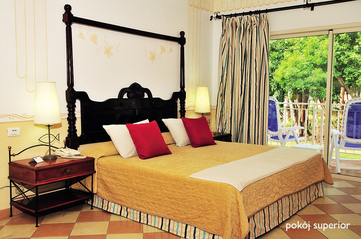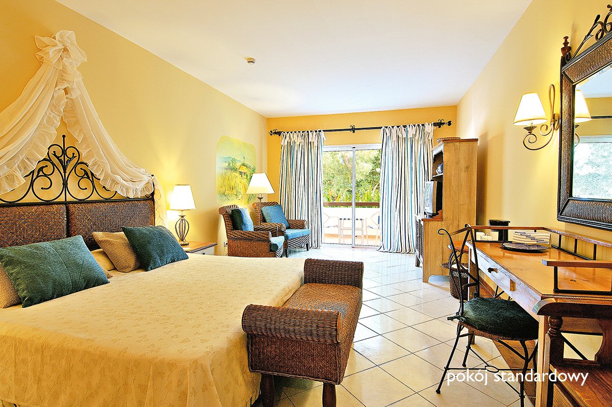 standardowy: 2-os. (możliwość 1 lub 2 dostawek dla dzieci), ok. 39 m², indywidualnie sterowana klimatyzacja, łazienka (wanna, wc; suszarka), telewizja satelitarna, telefon, sejf, żelazko, deska do prasowania, zestaw do kawy/herbaty, minibar (codziennie uzupełniany napojami bezalkoholowymi, piwem i wodą); bezpłatne łóżeczko dla dziecka do 2 lat na zamówienie przed przyjazdem; balkon lub taras; widok na ogród lub basen; superior: 2-os. (możliwość 1 lub 2 dostawek dla dzieci), ok. 44 m², wyposażenie jak w pokoju standardowym, dodatkowo: butelka rumu na powitanie, pierwszeństwo do rezerwacji kolacji w rest. a la carte; balkon lub taras; pokój superior za dopłatą; superior plus: 2-os. (możliwość 1 dostawki), ok. 44m², wyposażenie jak w pokoju standardowym, dodatkowo: butelka rumu na powitanie, pierwszeństwo do rezerwacji kolacji w rest. a la carte, ekspresowe zakwaterowanie oraz bezpłatne przedłużenie ostatniej doby hotelowej do godz 14.00, szlafroki i kapcie; balkon lub taras; pokój superior plus za dopłatą; premium: 2-os., ok 90 m², luksusowy, sypialnia, optycznie wydzielona część dzienna, wyposażenie jak w pokoju standardowym, dodatkowo: prysznic i wanna z hydromasażem w łazience, prysznic tropikalny, kapcie i szlafroki, menu poduszkowe, obsługa konsjerża, internet bezprzewodowy; balkon lub taras; pokój premium za dopłatą, dostępny dla osób powyżej 18. roku życia.