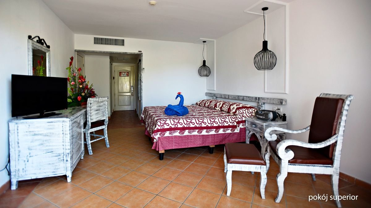 standardowy: 2-os. (możliwość 1 dostawki dla osoby dorosłej lub dziecka), ok. 40 m², klimatyzowany, łazienka (wanna lub prysznic, wc; suszarka), telewizja satelitarna, telefon, żelazko i deska do prasowania, sejf, minibar (codziennie uzupełniany wodą); balkon lub taras (stolik i krzesełka), widok na ogród lub basen; superior: 2-os. (możliwość 1 dostawki dla osoby dorosłej lub dziecka), ok. 40 m², odnowiony, o podwyższonym standardzie, wyposażenie jak w pokoju standardowym; pokój superior za dopłatą; suite: 2-os. (możliwość 1 dostawki dla osoby dorosłej lub dziecka), ok. 60 m², sypialnia, pokój dzienny z sofą, wyposażenie jak w pokoju standardowym, dodatkowo w łazience: wanna i oddzielny prysznic; suite za dopłatą.