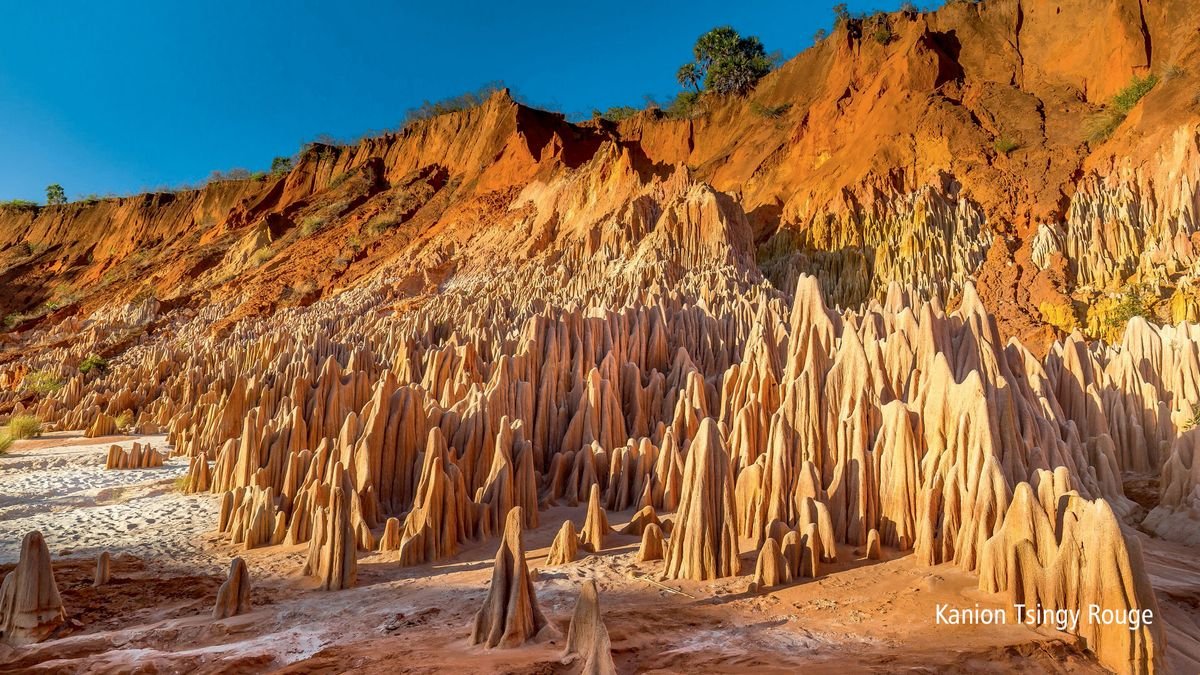Śniadanie. Wykwaterowanie. Przejazd do KANIONU TSINGY ROUGE, kolejnego wyjątkowego miejsca nie tylko na mapie Madagaskaru, ale i świata. Wkraczając na teren parku narodowego, w obrębie którego znajduje się kanion, odwiedzającego otaczać zaczyna niezwykły, wręcz surrealistyczny krajobraz tworzony przez wapienne skały wyżłobione w ciągu milionów lat przez rzekę Irodo oraz zjawiska atmosferyczne. Przejazd do hotelu w DIEGO SUAREZ, zakwaterowanie. Obiad. Czas wolny. Kolacja, nocleg.