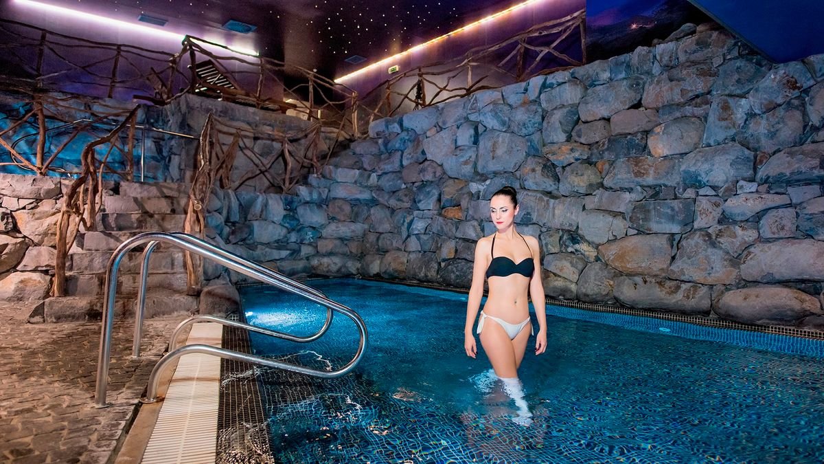 •basen, słodka woda, ok. 350 m², gł. 0,94-1,4 m•basen wewnętrzny (zamknięty z powodu renowacji do końca grudnia 2025, klienci mogą korzystać z wewnętrznego basenu oraz w części spa)