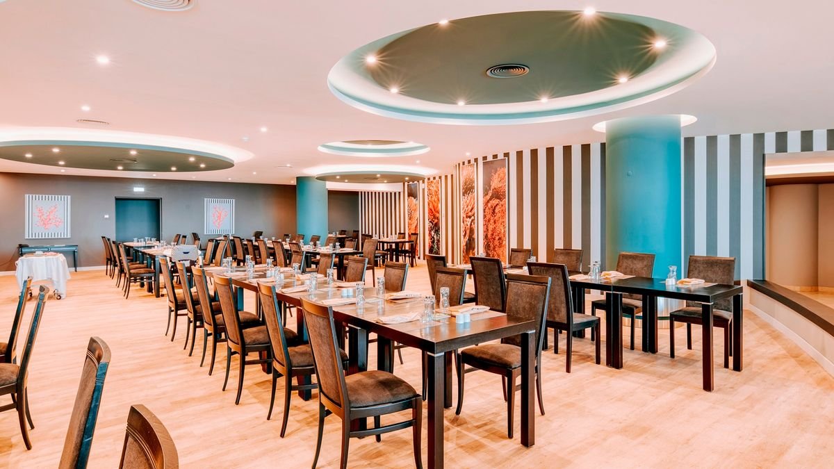 śniadanie (7.30-10.30), obiad (12.30-15.00), kolacja (19.00-21.30) w formie bufetu w restauracji Atlantico, późne śniadanie (10.30-12.00) i przekąski (12.00-18.00) w wyznaczonych miejscach
