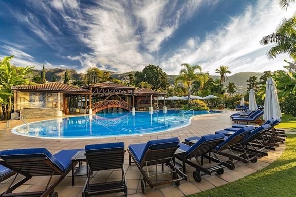 Odkryj prawdziwą perełkę Madery! Elegancki hotel położony w spektakularnych ogrodach z panoramicznym widokiem na Funchal zapewni Ci niezapomniany wypoczynek. Spaceruj wśród setek egzotycznych roślin, delektuj się świeżymi potrawami z lokalnych produktów prosto z hotelowego ogrodu i relaksuj się przy otoczonym palmami basenie. Poznaj Colombo, żółwia, który od 1969 r. jest atrakcją tego wyjątkowego miejsca. Tutaj komfort spotyka się z autentycznym urokiem Madery – idealne połączenie na wymarzone wakacje! Zarezerwuj swój pobyt już dziś i przekonaj się, dlaczego to miejsce zachwyca Gości z całego świata.