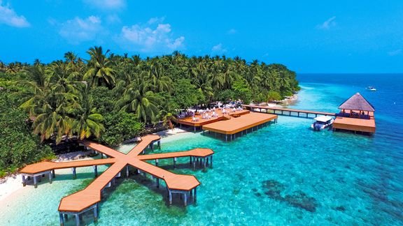 Klimatyczny kurort położony na niewielkiej, tropikalnej wyspie na Oceanie Indyjskim. Idylliczne miejsce, w którym czas się zatrzymał, a najlepszą rozrywką jest odpoczynek w zgodzie z naturą - błogie lenistwo na rajskiej plaży, nurkowanie wśród cudownych raf koralowych, czy podziwianie uroków wyspy z hotelowych tarasów. Kryte strzechą, otoczone palmami kokosowymi budynki doskonale wtapiają się w naturalny krajobraz Fihalhohi i są wymarzoną scenerią na romantyczne wakacje we dwoje. W hotelu na Gości czekają odprężające, balijskie masaże i inne zabiegi w spa Huvandhumaa. Wieczory z karaoke i muzyką na żywo wprawiają w dobry nastrój również po zachodzie słońca.