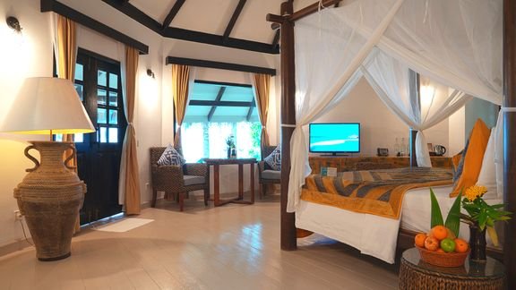 beach villa: 2-os. (możliwość 1 dostawki dla dziecka), ok. 77 m², indywidualnie sterowana klimatyzacja, łazienka (wanna, wc, bidet; suszarka), prysznic zewnętrzny, internet bezprzewodowy, telewizja satelitarna, zestaw do kawy/herbaty; za opłatą: minibar (płatny wg konsumpcji); ograniczony widok na morze.