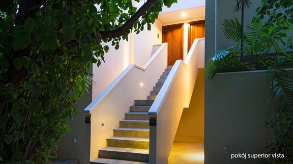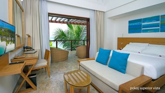 superior vista: 2-os. (możliwość 1 dostawki), ok. 40 m², na 1. piętrze, indywidualnie sterowana klimatyzacja, wentylator sufitowy, łazienka (wanna lub prysznic, wc; suszarka, kapcie i szlafrok), internet bezprzewodowy, telewizja satelitarna, zestaw do kawy/herbaty, minibar (codziennie uzupełniany w wodę, reszta płatna wg konsumpcji); balkon (stolik i krzesełka); superior bungalow: wyposażenie jak w pokoju superior vista, dodatkowo bezpośrednie wyjście na plażę (parter); superior beach: wyposażenie jak w pokoju superior vista, dodatkowo bezpośrednie wyjście na plażę (parter).