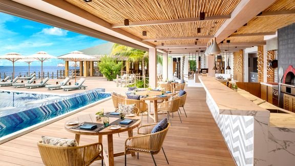 pięciogwiazdkowy, nowoczesny i luksusowy, otwarty w 2019 r., 60 willi, budynek główny, lobby, całodobowa recepcja, restauracja główna Aailaa – śniadania w formie bufetu, obiady i kolacje à la carte, kuchnia lokalna i międzynarodowa, dostępne foteliki dla dzieci, dania wegetariańskie, restauracje à la carte: Kaashi – tajska, Fiamma – włoska, Hashi – japońska, bary: Wine Room, Wabi Sabi, Rum Baan, Horizon; wymiana walut; taras z widokiem na ocean, ogród palmowy, bezpłatny internet bezprzewodowy w miejscach ogólnodostępnych; za opłatą: pralnia; akceptowane karty kredytowe: Visa, MasterCard.