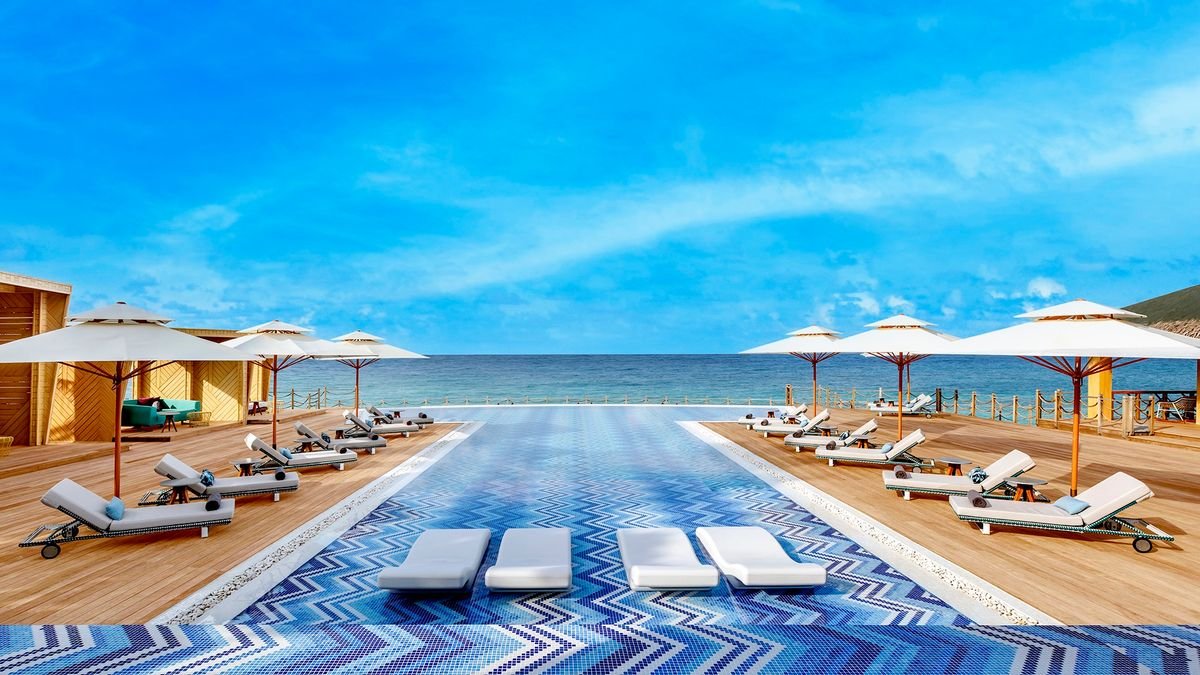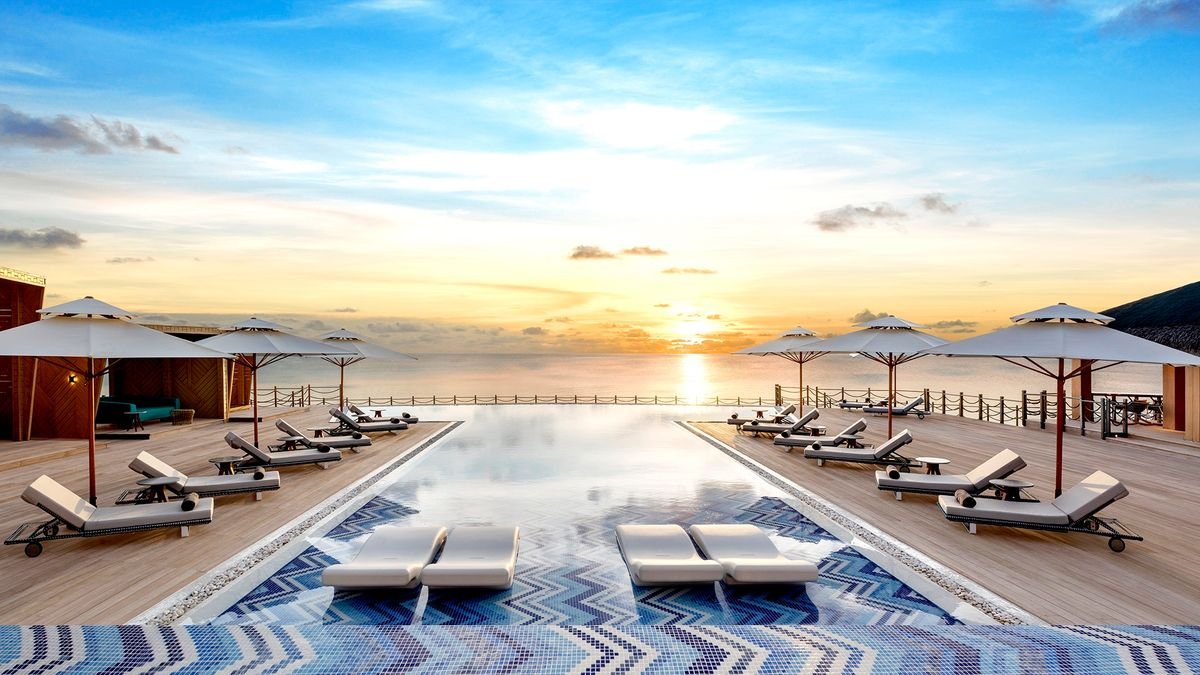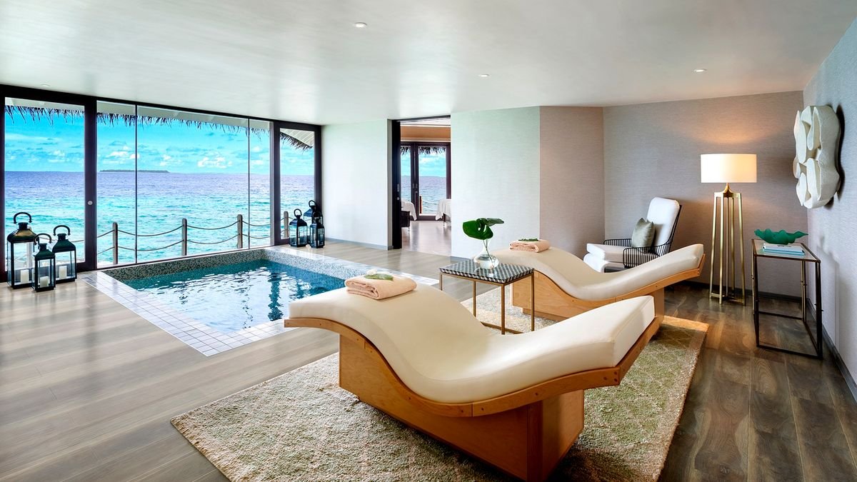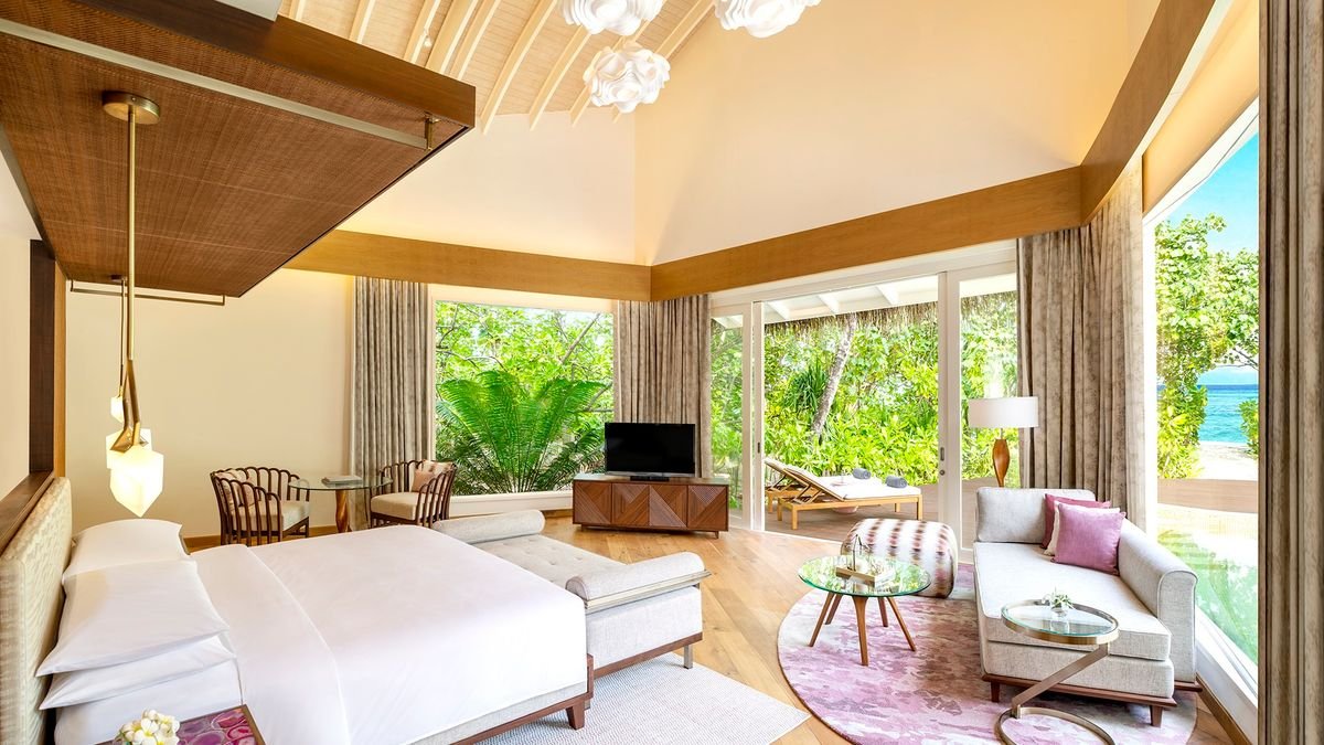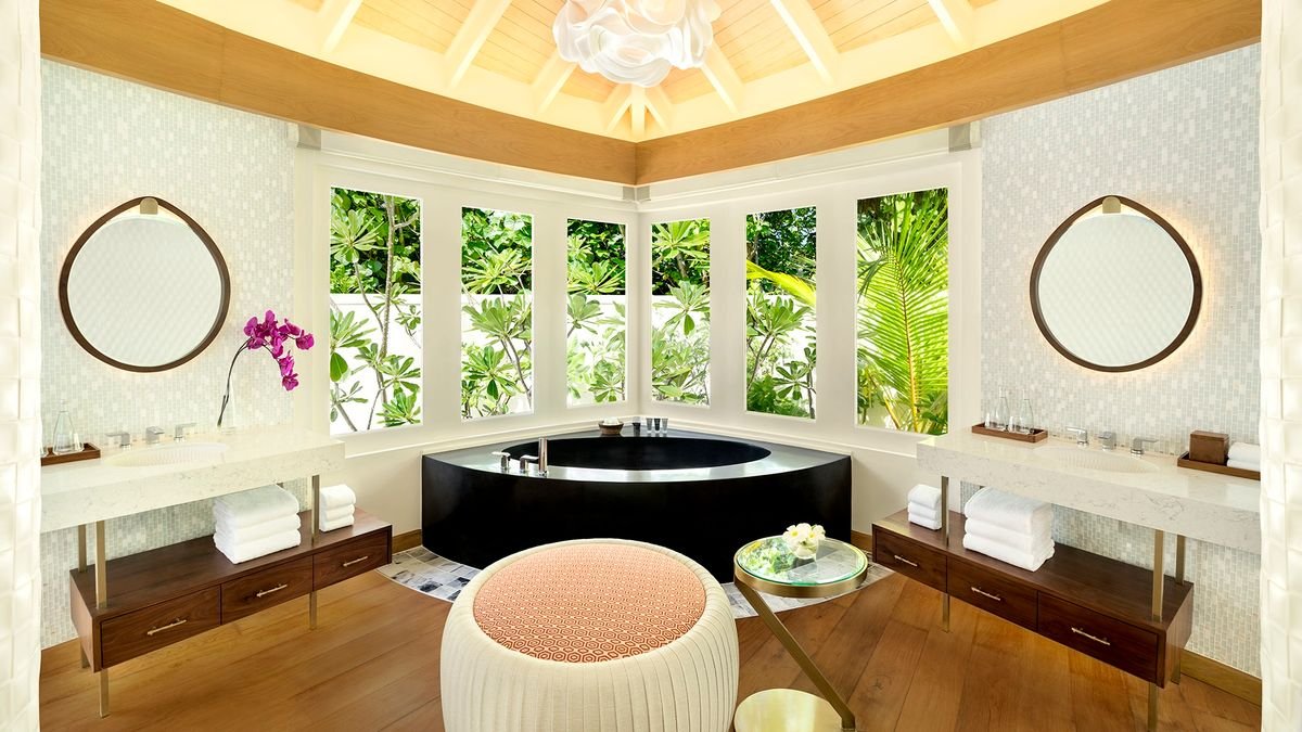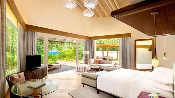 beach pool villa sunrise: 2-os. (możliwość 1 dostawki), ok. 248 m² (z tarasem, zewnętrznym prysznicem i basenem), indywidualnie sterowana klimatyzacja, łazienka (wanna, wc, bidet; suszarka), prysznic zewnętrzny, internet bezprzewodowy, telefon, sejf, minibar (bezpłatnie butelka wina na powitanie; płatny wg konsumpcji), 1,5 l wody uzupełniane codziennie, zestaw do kawy/herbaty, usługi konsjerża (wymagane zgłoszenie telefoniczne); bezpłatne łóżeczko dla dziecka do 2 lat na zamówienie przed przyjazdem; taras (leżaki), basen (ok. 33 m²), widok na ocean.