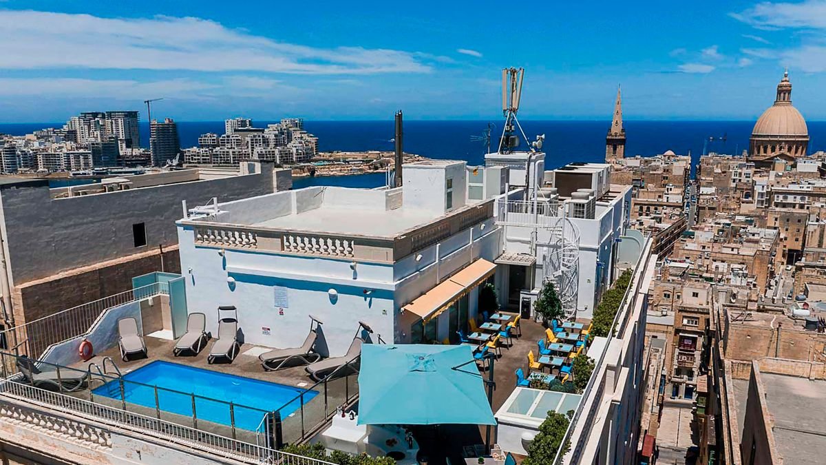 Położony w centrum stolicy wyspy – Valletty, jest doskonałą bazą wypadową do zwiedzania miasta. W odległości krótkiego spaceru znajdują się takie atrakcje turystyczne, jak Ogrody Hastings, Bastion św. Andrzeja, fontanna Trytona czy Konkatedra św. Jana Chrzciciela. Hotel zachwyca stylowymi i eleganckimi wnętrzami, a pobyt w komfortowych pokojach gwarantuje udany wypoczynek. Na miejscu taras na dachu z małym basenem skąd rozpościera się piękny widok na okolicę. Chwalony za miłą i pomocną obsługę oraz smaczne śniadania.