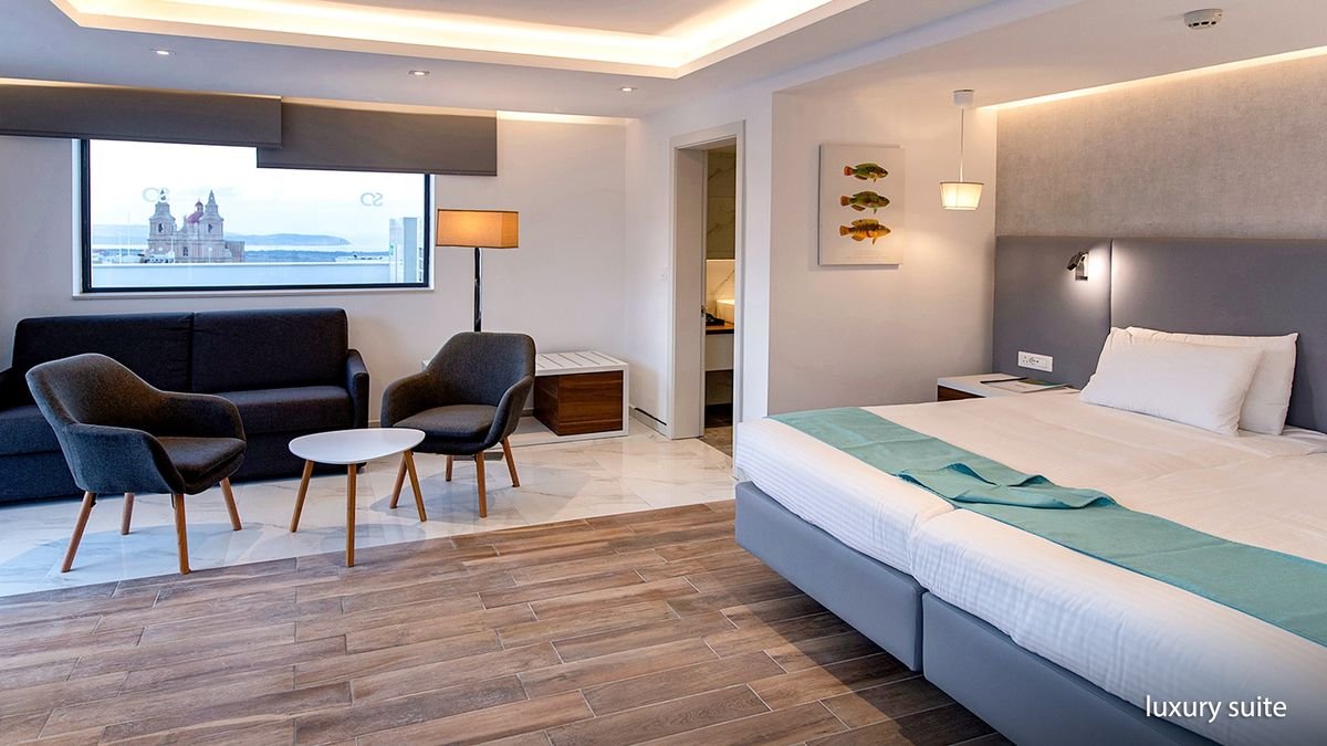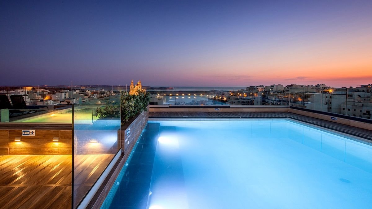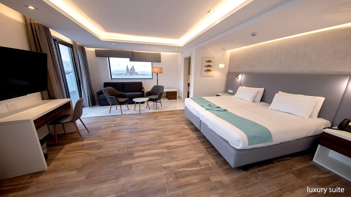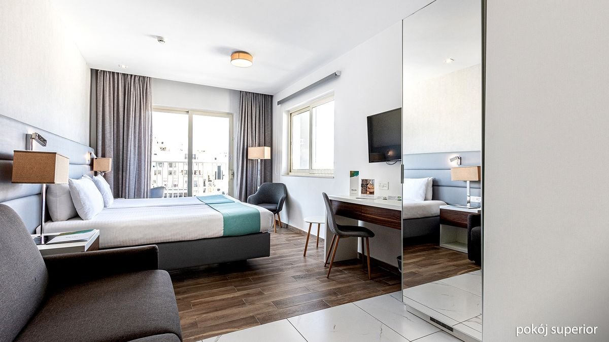 Stylowe i eleganckie wnętrza oraz kameralna atmosfera hotelu sprawiają, że jest świetnym wyborem zarowno na urlop we dwoje, wyjazd z rodziną, jak i spotkanie służbowe. Najważniejszym miejscem jest tutaj basen z tarasem na dachu, przy którym można nie tylko odpocząć, ale również podziwiać cudowne widoki na miasto oraz wyspy Gozo i Comino. Popływać można tu również w basenie krytym, a na chwilę relaksu polecamy wybrać się do spa. W hotelu przestronne i komfortowe pokoje, na miejscu są aż 3 restauracje i 2 bary. Tylko kilka kroków stąd do centrum malowniczego miasteczka Mellieha, z którego odpływają promy na Gozo.