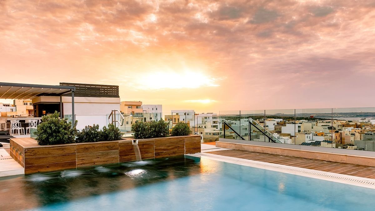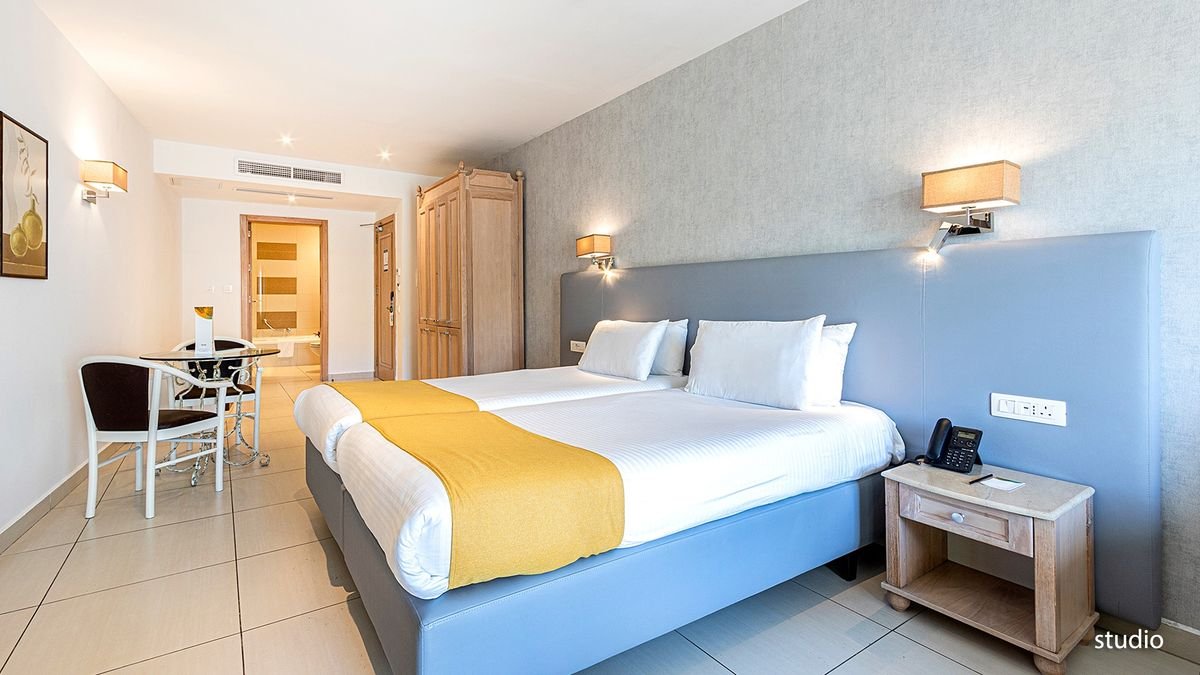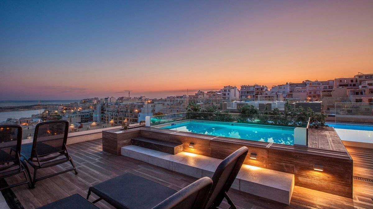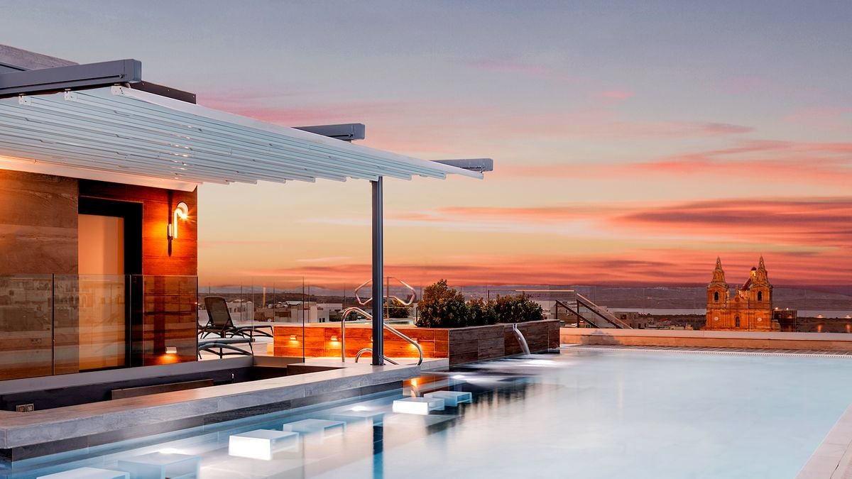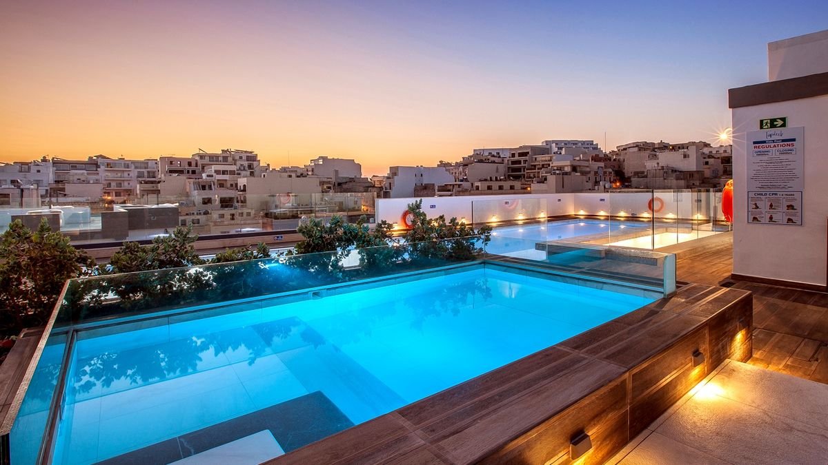 Stylowe i eleganckie wnętrza oraz kameralna atmosfera hotelu sprawiają, że jest świetnym wyborem zarowno na urlop we dwoje, wyjazd z rodziną, jak i spotkanie służbowe. Najważniejszym miejscem jest tutaj basen z tarasem na dachu, przy którym można nie tylko odpocząć, ale również podziwiać cudowne widoki na miasto oraz wyspy Gozo i Comino. Popływać można tu również w basenie krytym, a na chwilę relaksu polecamy wybrać się do spa. W hotelu przestronne i komfortowe pokoje, na miejscu są aż 3 restauracje i 2 bary. Tylko kilka kroków stąd do centrum malowniczego miasteczka Mellieha, z którego odpływają promy na Gozo.