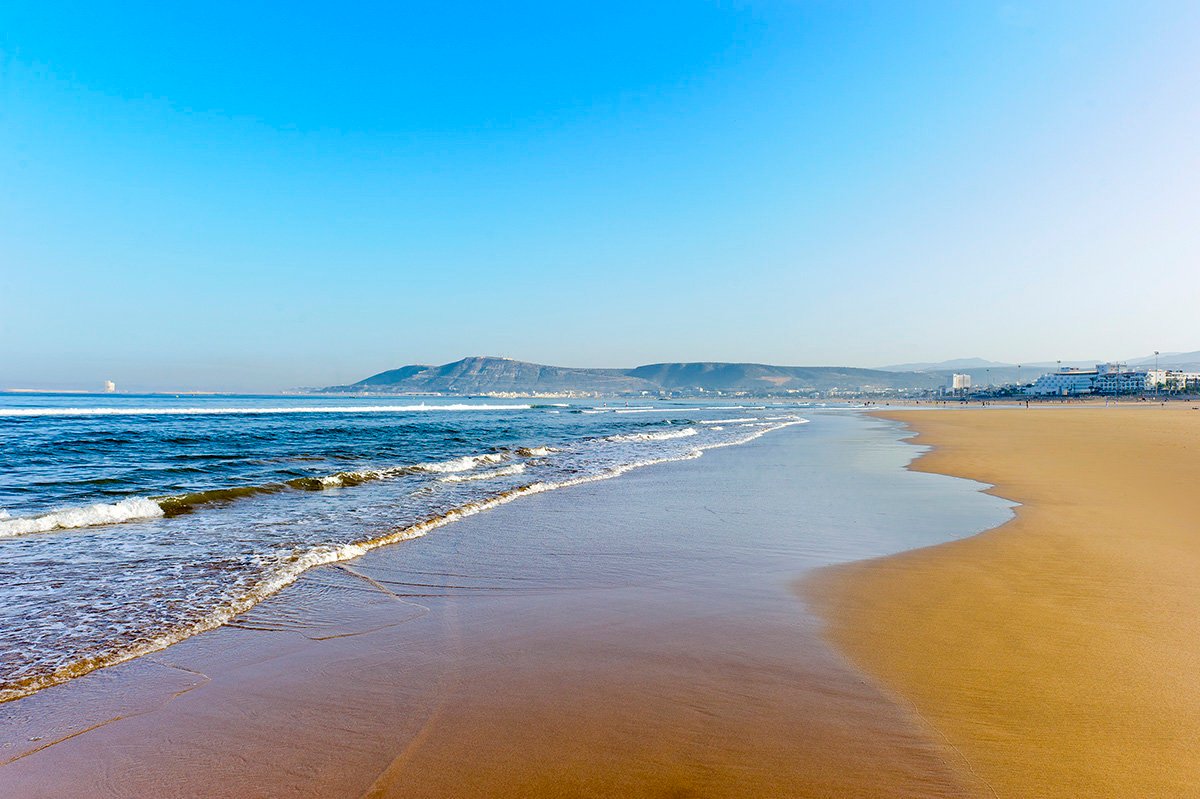 w turystycznej części AGADIRU, ok. 2,5 km od centrum miasta, przy nadmorskiej promenadzie i pięknej piaszczystej plaży; ok. 25 km od lotniska w Agadirze.