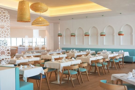 śniadanie (7.00‑10.00), obiad (12.30-14.30), kolacja (19.00-22.00) w formie bufetu w restauracji głównej; przekąski w snack barze (12.00‑15.30); podwieczorek w snack barze (15.45-17.00); lokalne napoje alkoholowe i bezalkoholowe w wyznaczonych barach (10.00-24.00); raz na tydzień kolacja w restauracji à la carte (19.00-22.00); wymagana rezerwacja, napoje dodatkowo płatne; wymagane noszenie opasek all inclusive.