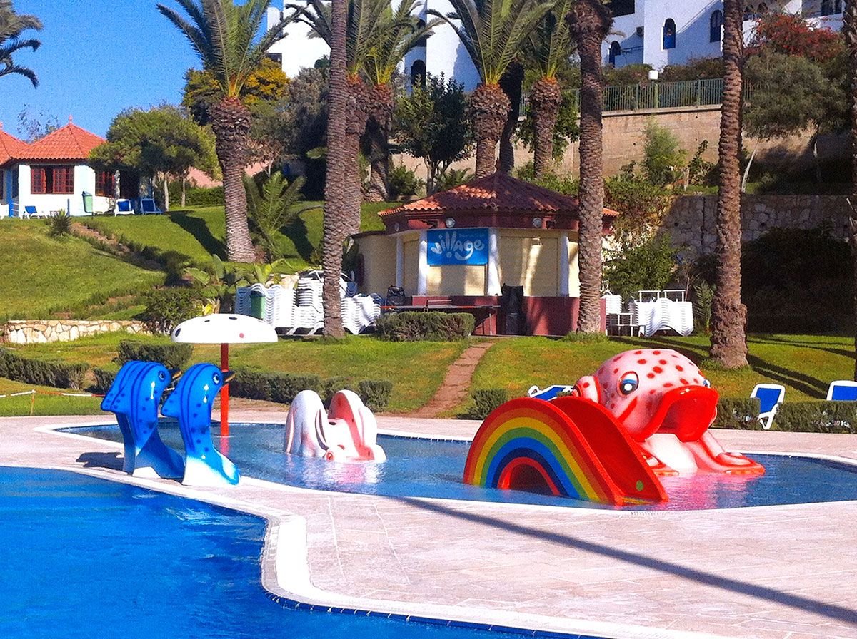 3 baseny, w tym jeden z 6 zjeżdżalniami dla dorosłych, basen dla dzieci, gł. ok. 0,3 m, z 3 zjeżdżalniami, jeden z basenów podgrzewany w sezonie zimowym, przy basenach bezpłatne parasole, leżaki i materace, ręczniki za kaucją (100 MAD); wielofunkcyjne boisko: minipiłka nożna, piłka ręczna, koszykówka, boisko do siatkówki i badmintona, tenis stołowy, rzutki, boule, piłka wodna, gimnastyka w wodzie, stretching; plac zabaw dla dzieci, miniklub (4-9 lat), animacje sportowe w ciągu dnia, wieczorem przedstawienia, programy rozrywkowe, nauka tańca brzucha, nauka gotowania po marokańsku, henna, lekcje nauki języka arabskiego; 2 korty tenisowe, sprzęt do tenisa (ok. 50 MAD/godz.); centrum spa: ok. 140 m², starannie utrzymane: siłownia, fitness; za opłatą: hammam, sauna, bogata oferta zabiegów pielęgnacyjnych i upiększających na twarz i ciało, 2 kabiny do masażu.