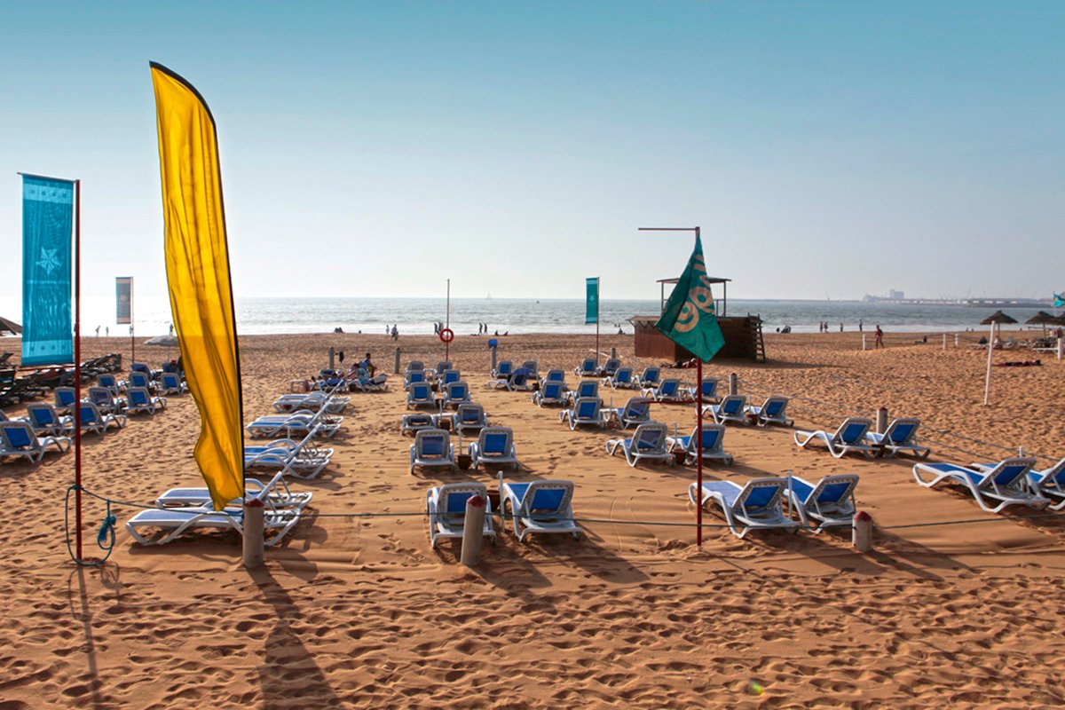 publiczna, wydzielona część hotelowa, piaszczysta, długa, szeroka, łagodne zejście do morza, ok. 200 m od hotelu, przejście przez ulicę, bezpłatne parasole, leżaki i materace, ręczniki za kaucją (ok. 100 MAD).