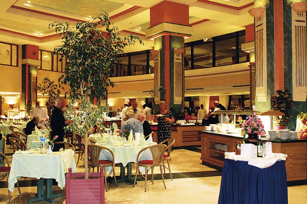 śniadanie (6.30-10.00), obiad (12.30-15.00), kolacja (19.00-21.30) w formie bufetu w restauracji głównej, późne śniadanie kontynentalne na tarasie restauracji głównej (10.00-11.00); przekąski w barze przy basenie (12.30-15.00); podwieczorek w barze przy basenie (16.30-17.30); lokalne napoje alkoholowe i bezalkoholowe (10.00-24.00) w wyznaczonych barach; możliwość zarezerwowania kolacji w każdej z 3 restauracji tematycznych (raz na pobyt); wymagane noszenie opasek all inclusive.