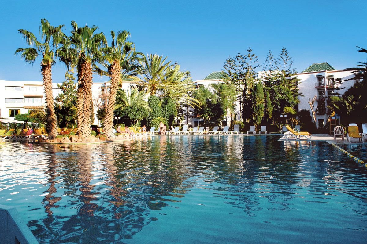 w turystycznej części AGADIRU przy nadmorskiej promenadzie i piaszczystej plaży, ok. 1 km od centrum miasta ze sklepami, restauracjami, klubami nocnymi i barami; ok. 30 km od portu lotniczego w Agadirze.