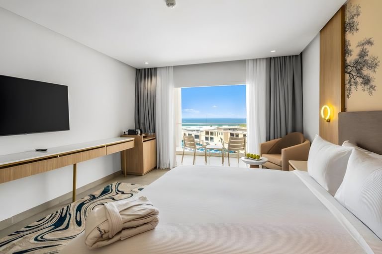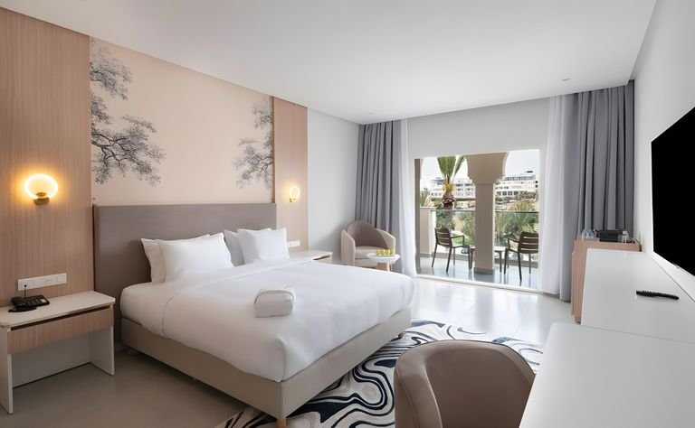 Niezapomniane wakacje w orientalnym klimacie? Odwiedź słoneczny Agadir i spędź urlop w wyjątkowym hotelu tuż przy pięknej, piaszczytej plaży. Do gustu przypadną Ci ładnie zaaranżowane baseny, w których możesz pływać od świtu do nocy, a Twoje dzieciaki będą zachwycone zwłaszcza tym z wodnym placem zabaw i 6 zjeżdżalniami. Jasne i przestronne wnętrza łączą tradycyjną arabską architekturę z nowoczesnym stylem, komfortowe pokoje są wyposażone we wszystkie potrzebne udogodnienia, a niektóre z nich mają również bezpośredni dostęp do współdzielonego basenu! Ci, który lubią dobrze zjeść, z pewnością znajdą coś dla siebie w 3 restauracjach serwujących potrawy kuchni marokańskiej, śródziemnomorskiej i międzynarodowej, miłośnicy aktywności mogą wziąć udział w animacjach, pograć w siatkówkę plażową lub padla, a poszukujący chwili wytchnienia i relaksu zaplanować czas w spa z krytym basenem, sauną, łaźnią parową i hammamem.