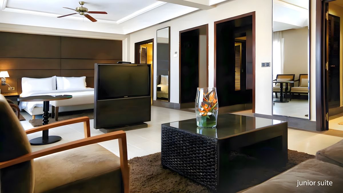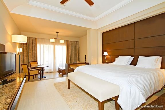 standardowy: 2-os. (możliwość 1 dostawki dla os. dorosłej lub 2 dostawek dla dzieci), ok. 45 m², elegancki, klimatyzowany (w sezonie letnim), łazienka (wanna lub prysznic, wc; suszarka), internet bezprzewodowy, telewizja satelitarna, telefon, sejf, minibar, zestaw do kawy/herbaty; balkon lub taras (stolik i krzesełka); widok na basen za dopłatą; junior suite: 2-os. (możliwość 1 dostawki dla dziecka), ok. 80 m2, optycznie wydzielona część dzienna, wyposażenie jak w pokoju standardowym; balkon lub taras (stolik i krzesełka); widok na morze za dopłatą; junior suite za dopłatą.