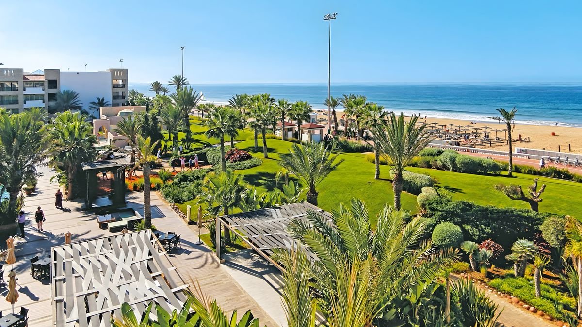 w turystycznej części AGADIRU, ok. 2 km od centrum miasta z restauracjami, barami i sklepami, przy nadmorskiej promenadzie, ok. 2,5 km od targu, ok. 5 km od Agadir Medina, ok. 7 km od portu w Agadirze i fortecy Kasbah, ok. 13 km od parku Crocoparc, ok. 19 km od Parku Narodowego Souss-Massa; ok. 24 km od lotniska w Agadirze.