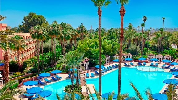 Fascynujący Marrakesz na wyciągnięcie ręki! Położony blisko takich atrakcji turystycznych, jak plac Dżamaa Al-Fna i Meczet Al-Kutubijja, do których możesz dotrzeć dłuższym spacerem, stanowi doskonałą bazę wypadową do zwiedzania miasta – dzięki bliskiej odległości od przystanku autobusowego bez problemu dojedziesz również do centrum czy wspaniałego pałacu El-Bahia. Po dniu pełnym atrakcji możesz zrealaksować się w barze przy basenie lub w zaciszu przestronnych i komfortowych pokoi. Do dyspozycji Gości także ogród i 4 restauracje, w których nawet najwięksi smakosze znajdą coś dla siebie. Chwalony za miłą i pomocną obsługę, to idealne miejsce na wypoczynek w promieniach marokańskiego słońca.