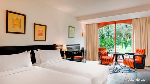 deluxe: 2-os. (możliwość 1 dostawki), ok. 26 m2, klimatyzowany, łazienka (wanna lub prysznic, bidet, wc; suszarka), telewizja satelitarna, telefon, minilodówka; za opłatą: internet bezprzewodowy, sejf, minibar (płatny wg konsumpcji); balkon (stolik i krzesełka), widok na ogród lub basen; premium: 2-os. (możliwość 1 dostawki), ok. 26 m2, wyposażenie jak w pokoju deluxe; balkon (stolik i krzesełka), widok na ogród lub basen; suite: 2-os. (możliwość 1 dostawki), ok. 52 m2, część dzienna i sypialnia oddzielone drzwiami, wyposażenie jak w pokoju deluxe; balkon (stolik i krzesełka), widok na ogród lub basen; pokój premium i suite za dopłatą.