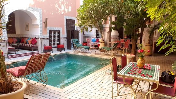 Tu poczujesz atmosferę marakeskiego domu, a wysmakowane wnętrza w lokalnym stylu dodatkowo podkreślają niezwykła magię Marakeszu. Kameralny, bardzo lubiany przez Gości ma ładne patio z basenem wyłożone płytkami i ozdobione zielenią, gdzie możesz podziwiać orientalną architekturę hotelu i chłonąć niezwykły nastrój tego miejsca po dniu wypełnionym odkrywaniem cudów Marakeszu, które tutaj masz prawie na wyciągnięcie ręki.
