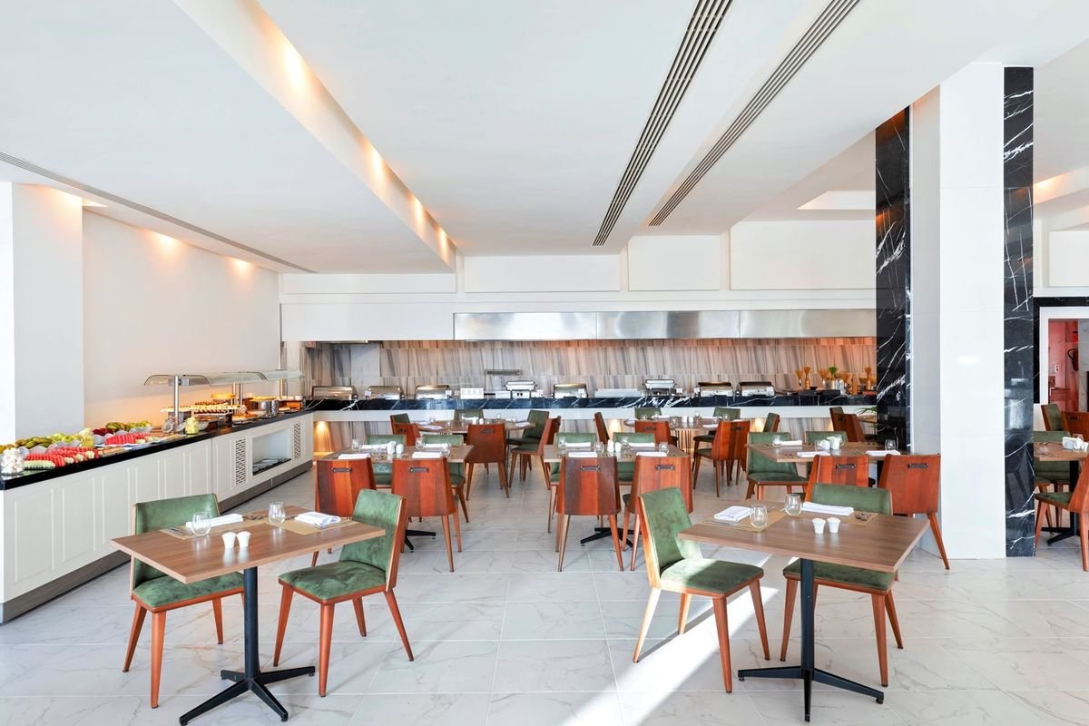 3 restauracje: restauracja główna – dania w formie bufetu, kuchnia międzynarodowa, Italian Alfredo – dania w formie bufetu, kuchnia włoska, Azha – à la carte, kuchnia marokańska i międzynarodowa