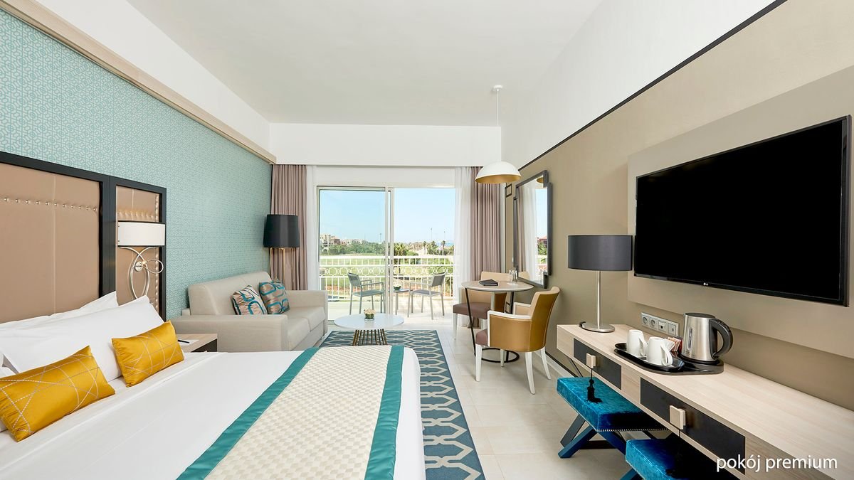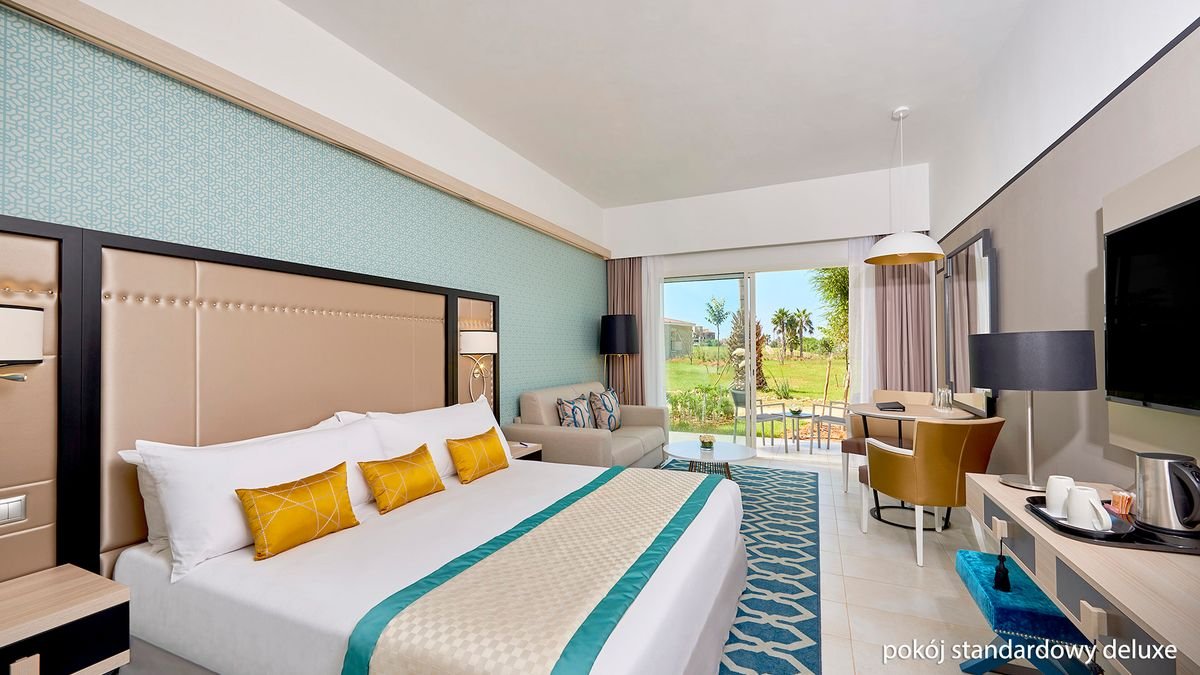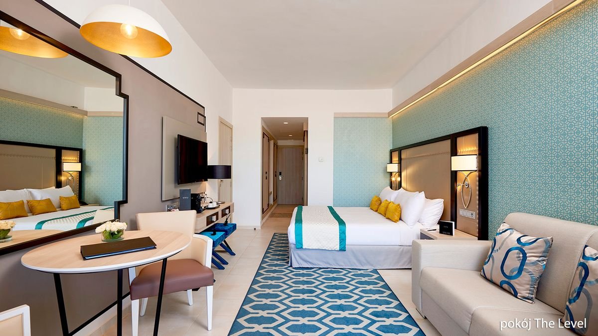standardowy deluxe: 2-os. (możliwość 1 dostawki – sofa), ok. 33 m2, indywidualnie sterowana klimatyzacja, łazienka (wanna lub prysznic, wc; suszarka do włosów), internet bezprzewodowy, telewizja satelitarna, telefon, sejf, zestaw do kawy/herbaty, minibar (płatny wg konsumpcji); bezpłatne łóżeczko dla dziecka do 2 lat na zamówienie przed przyjazdem; balkon lub taras (stolik i krzesełka), widok na ogród lub basen; łóżko typu twin na zamówienie; ; premium: 2-os. (możliwość 1 dostawki – sofa), ok. 33 m2, indywidualnie sterowana klimatyzacja, wyposażenie jak w pokoju standardowym deluxe, widok na basen, boczny widok na morze; ; The Level: 2-os. (możliwość 1 dostawki – sofa), ok. 36 m2, indywidualnie sterowana klimatyzacja, łazienka (wanna, wc; suszarka), wyposażenie jak w pokoju standardowym deluxe, dodatkowo: 1 butelka wody/ dzień, deska do prasowania, zestaw kosmetyków, menu poduszkowe, gazety na życzenie, klapki kąpielowe, szlafrok; bezpłatne łóżeczko dla dziecka do 2 lat na zamówienie przed przyjazdem; balkon lub taras (stolik i krzesełka), widok na ogród lub basen, boczny widok na morze; łóżko typu twin na zamówienie. Koncept THE LEVEL, który zawiera dodatkowe świadczenia: prywatna recepcja, pre-check/in, śniadanie do pokoju, wstęp do centrum wellness (hammam, jacuzzi, strefa relaksu, sauna), wydzielona część plaży i basen tylko dla Klientów The Level, możliwość bezpłatnego korzystania z The Level Lounge (prywatne śniadanie, przekąski, gazety), w pokojach: kosz powitalny, kosmetyki, menu poduszkowe, zestaw do kawy/herbaty, gazety, klapki kąpielowe, szlafroki, 1 butelka wody/dzień.