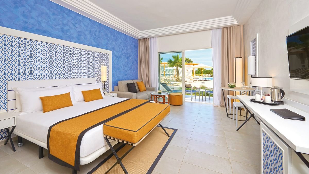 standardowy: 2-os. (możliwość 1 dostawki dla os. dorosłej lub 2 dla dzieci), ok. 39 m2, indywidualnie sterowana klimatyzacja, łazienka (wanna lub prysznic, wc; suszarka), telewizja satelitarna, telefon, sejf, minibar (płatny wg konsumpcji), widok na pole golfowe lub ogród.