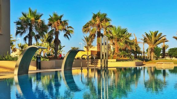 pięciogwiazdkowy, zbudowany w 2007/2008 r., całkowicie odnowiony w 2019 r., 307 pokoi, 3 budynki, 2 piętra, windy, przestronne i eleganckie lobby, całodobowa recepcja, restauracja główna – dania w formie bufetu, kuchnia międzynarodowa, snack bar – dania w formie bufetu, 2 restauracje à la carte – kuchnia śródziemnomorska i marokańska, w restauracjach dostępne foteliki dla dzieci, dania wegetariańskie, 4 bary, w tym Chiringuito na plaży; sklepy, butiki, parking, kantor; centrum konferencyjne, taras z widokiem na morze, ogród, bezpłatny internet bezprzewodowy; za opłatą: room service, pralnia, wypożyczalnia samochodów i rowerów, fryzjer, lekarz na wezwanie; akceptowane karty kredytowe: Visa, MasterCard, American Express.