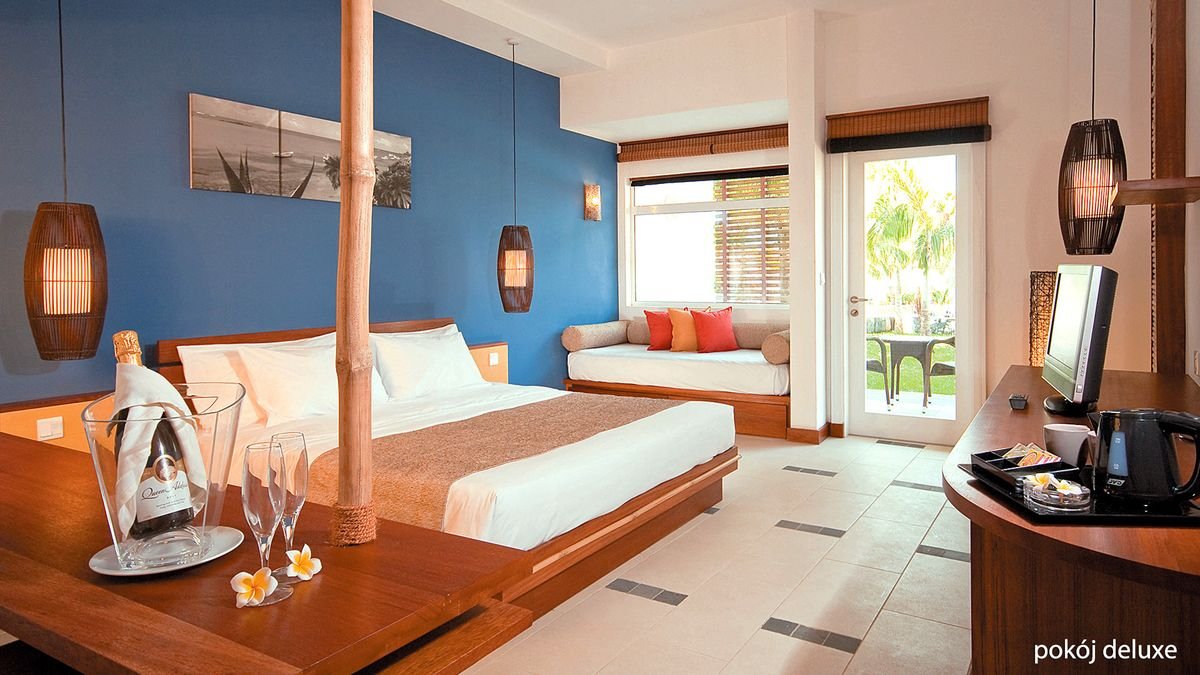Zapraszamy na rajskie wakacje na Mauritiusie! Z hotelu roztacza się piękny widok na błękitny ocean i pobliskie zielone wzgórza. Położony przy niewielkiej piaszczystej plaży, jest również doskonałą baza wypadową do zwiedzania tej części wyspy wraz z jej atrakcjami, takimi jak wodospady Grand River South East i malownicza plaża Cerfs Beach. Idealnym miejscem relaksu po aktywnie spędzonym dniu będzie zadbany, otoczony palmami basen typu infinity.