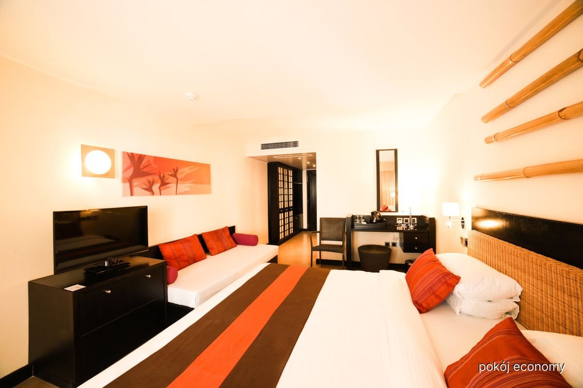 economy: 2-os. (możliwość 1 dostawki), ok. 35 m2, klimatyzowany, łazienka (wanna lub prysznic, wc; suszarka, zestaw kosmetyków), internet bezprzewodowy, telewizja satelitarna, zestaw do kawy/herbaty; balkon (stolik i krzesełka); deluxe: 2-os. (możliwość 1 dostawki), ok. 35 m2, wyposażenie jak w pokoju economy; balkon lub taras (stolik i krzesełka), widok na ogród; pokój deluxe za dopłatą.