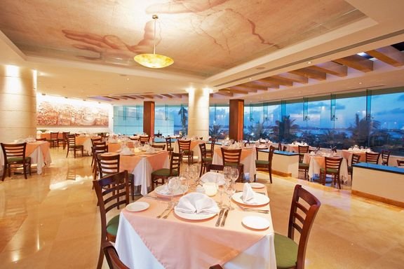 śniadanie (7.00-11.00) w formie bufetu w restauracji głównej lub w restauracji à la carte La Concha (7.00-10.30), obiad (12.30-16.00) w formie bufetu w restauracji głównej, kolacja (18.30-23.00) w formie bufetu w restauracji głównej lub w restauracjach à la carte (19.00-23.00), wymagana wczesniejsza rezerwacja; przekąski w snack-barze (11.00-16.00); kawa, kanapki, lody w barze Cafe Sole (7.00-23.00); napoje bezalkoholowe i lokalne oraz importowane napoje alkoholowe w barze Fresco (10.00‑18.00), w barze w lobby (12.00-1.00), Ekinox (18.30-1.00); wymagane noszenie opasek all inclusive.