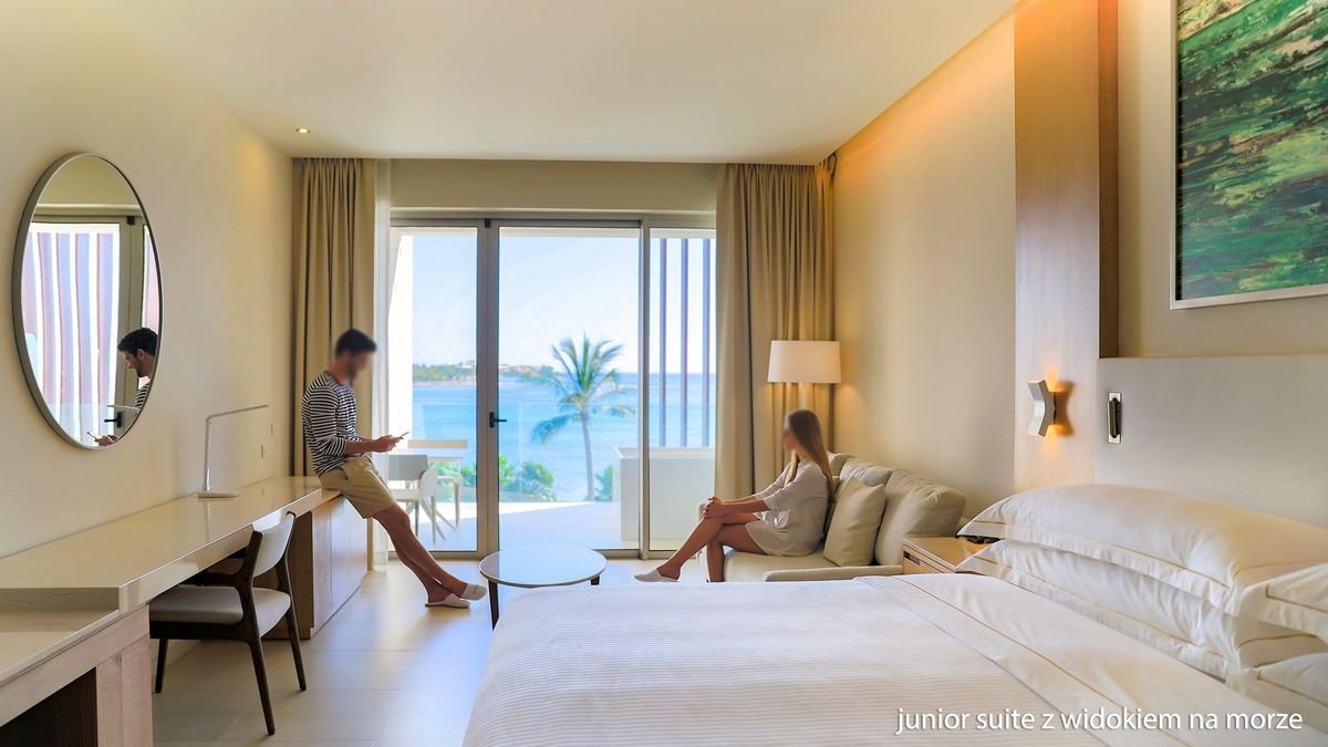 junior suite: 2-os. (możliwość 1 dostawki), ok. 46 m², indywidualnie sterowana klimatyzacja, łazienka (wanna lub prysznic, wc; suszarka, szlafroki, kapcie), telewizja satelitarna, telefon, zestaw do kawy/herbaty, sejf, żelazko i deska do prasowania; za opłatą: minibar; balkon lub taras (stolik i krzesełka); junior suite ocean front Premium Level: 2-os. (możliwość 1 dostawki), ok. 46 m², indywidualnie sterowana klimatyzacja, łazienka (wanna i prysznic, wc; suszarka, szlafroki, kapcie), wyposażenie jak w junior suite, dodatkowo: udogodnienia konceptu Premium Level; taras (jacuzzi), frontalny widok na morze; junior suite swim up Premium Level: 2-os. (możliwość 1 dostawki), ok. 46 m², indywidualnie sterowana klimatyzacja, łazienka (wanna i prysznic, wc; suszarka, szlafroki, kapcie), wyposażenie jak w junior suite, dodatkowo: udogodnienia konceptu Premium Level, dostęp do prywatnego basenu; pokój 1-os., junior suite ocean front Premium Level i junior suite swim up Premium Level na zamówienie, za dopłatą.