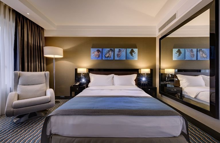 Ten stylowy i elegancki hotel to idealna propozycja dla tych, którzy chcą połączyć miejską przygodę z odrobiną luksusu. Położony w samym sercu Kiszyniowa, stanowi świetną bazę wypadową do odkrywania uroków tego wyjątkowego miasta! Na miejscu czekają na Ciebie komfortowe pokoje, w których znajdziesz wszystko, co potrzebne do wypoczynku, a w restauracji spróbujesz smacznych dań przygotowanych przez szefa kuchni. Jeśli potrzebujesz relaksu, odwiedź spa i pozwól sobie na chwilę tylko dla siebie podczas masażu, zabiegu pielęgnacyjnego lub w saunie solnej czy jacuzzi. City break w stolicy Mołdawii czeka właśnie na Ciebie!
