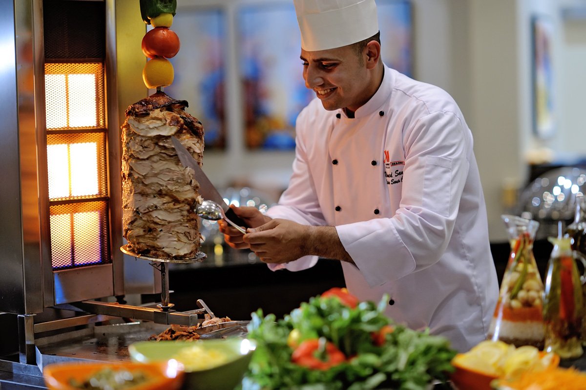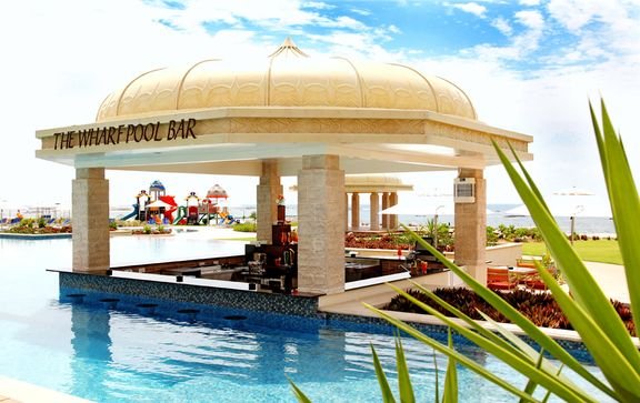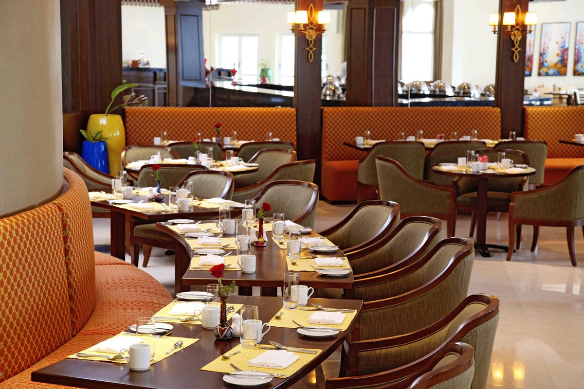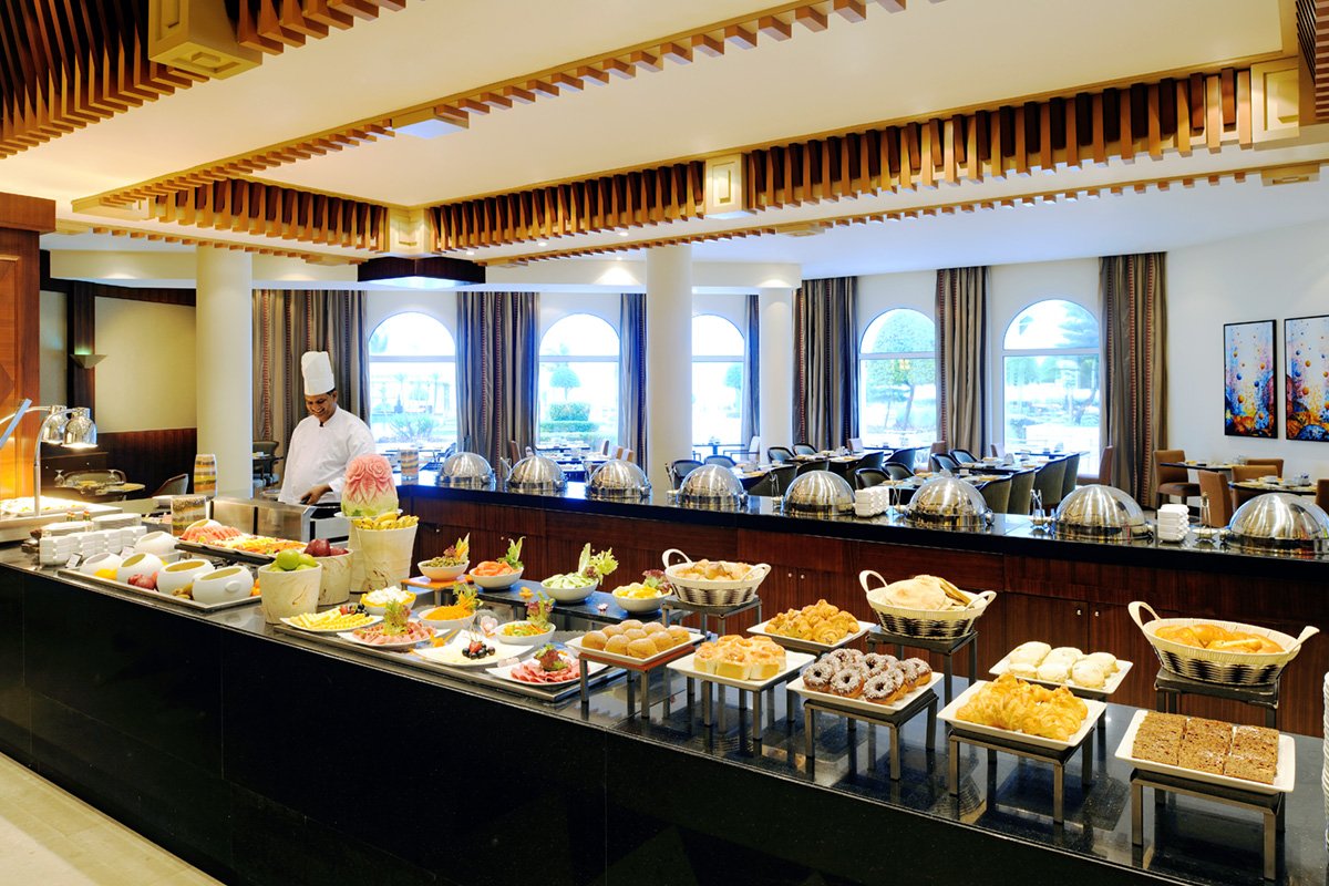 śniadanie (7.30-10.30), obiad (12.30-15.00), kolacja (19.00-22.30) w formie bufetu w restauracji Sumhuram; przekąski w barze przy basenie (12.00-18.00); napoje bezalkoholowe (7.00-22.30), lokalne napoje alkoholowe: piwo i wino (12.00-15.00, 18.00-22.30, w piątki od godz. 14.00); wymagane noszenie opasek all inclusive.