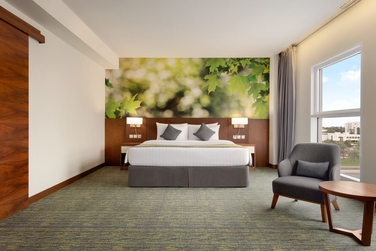 Nowoczesny, utrzymany w jasnej kolorystyce, jest świetnym pomysłem na wakacyjny wypoczynek we dwoje. Na miejscu czeka centrum konferencyjne, co sprawia, że idealnie sprawdzi się również na biznesowy wyjazd. W wolnym czasie można tu popływać w basenie na dachu, zrelaksować się w centrum spa czy skorzystać z siłowni. Koniecznie zwiedź centrum Muskatu, m. in. symbol miasta – Wielki Meczet Sułtana Qaboosa, który zachwyci swym majestatem każdego miłośnika wyszukanej architektury. Udaj się także na plażę i ciesz się urlopem w orientalnej odsłonie!