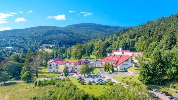 Bliski kontakt z naturą i bogata oferta zabiegów leczniczych i kosmetycznych. W pięknych okolicznościach przyrody możesz zadbać tu o zdrowie, kondycję i urodę. Klinika leży w pięknym miejscu, otoczona świerkowym lasem, z hotelowych tarasów można zachwycać się bez końca pięknymi widokami. Na wyciągniecie ręki są trasy piesze i rowerowe, warto także wybrać się do eleganckiego Parku Zdrojowego w Świeradowie Zdroju i poczuć atmosferę dawnych kurortów.